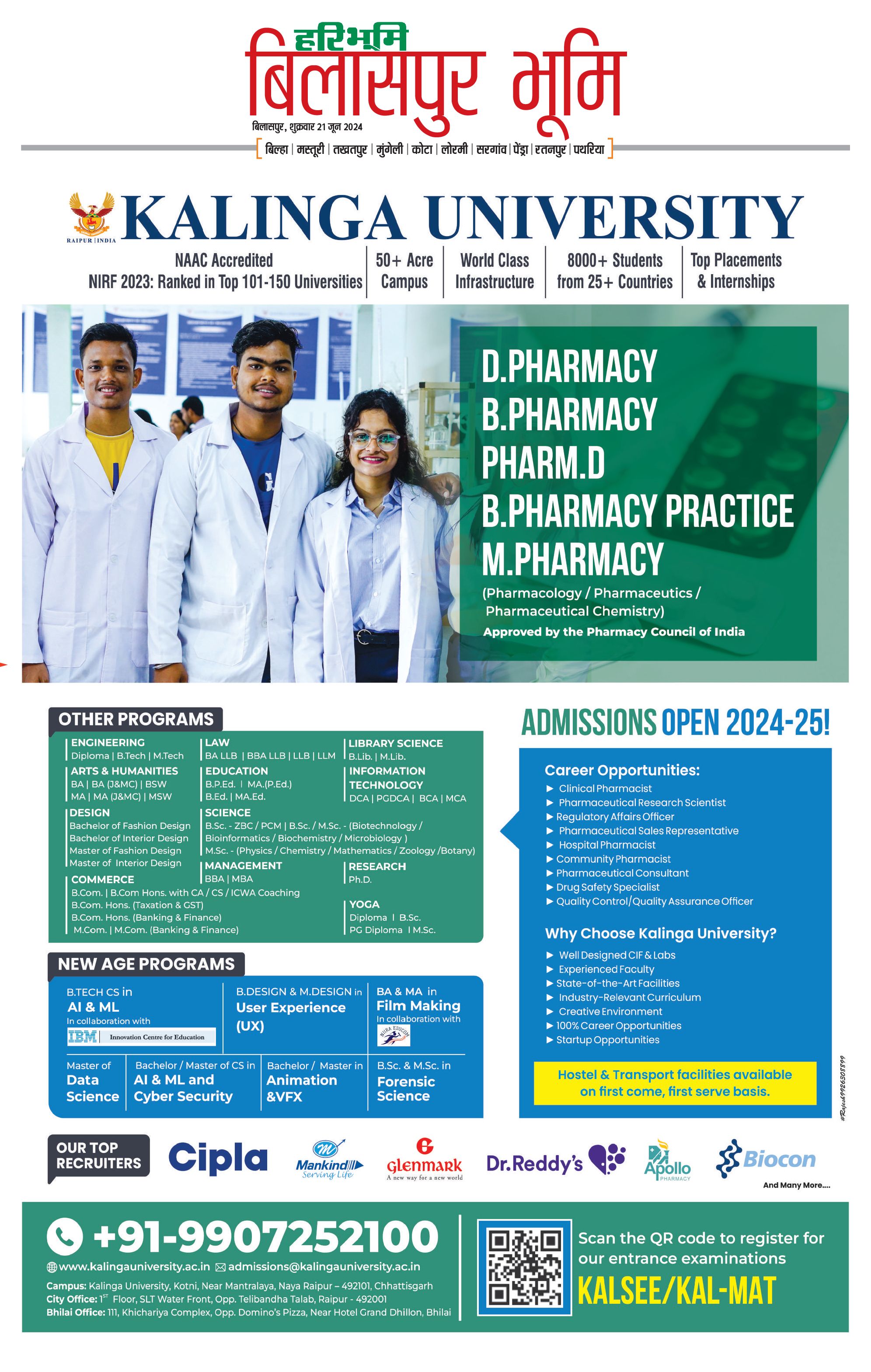 बिलासपुर भूमि - 21 Jun 2024 - - Page 1