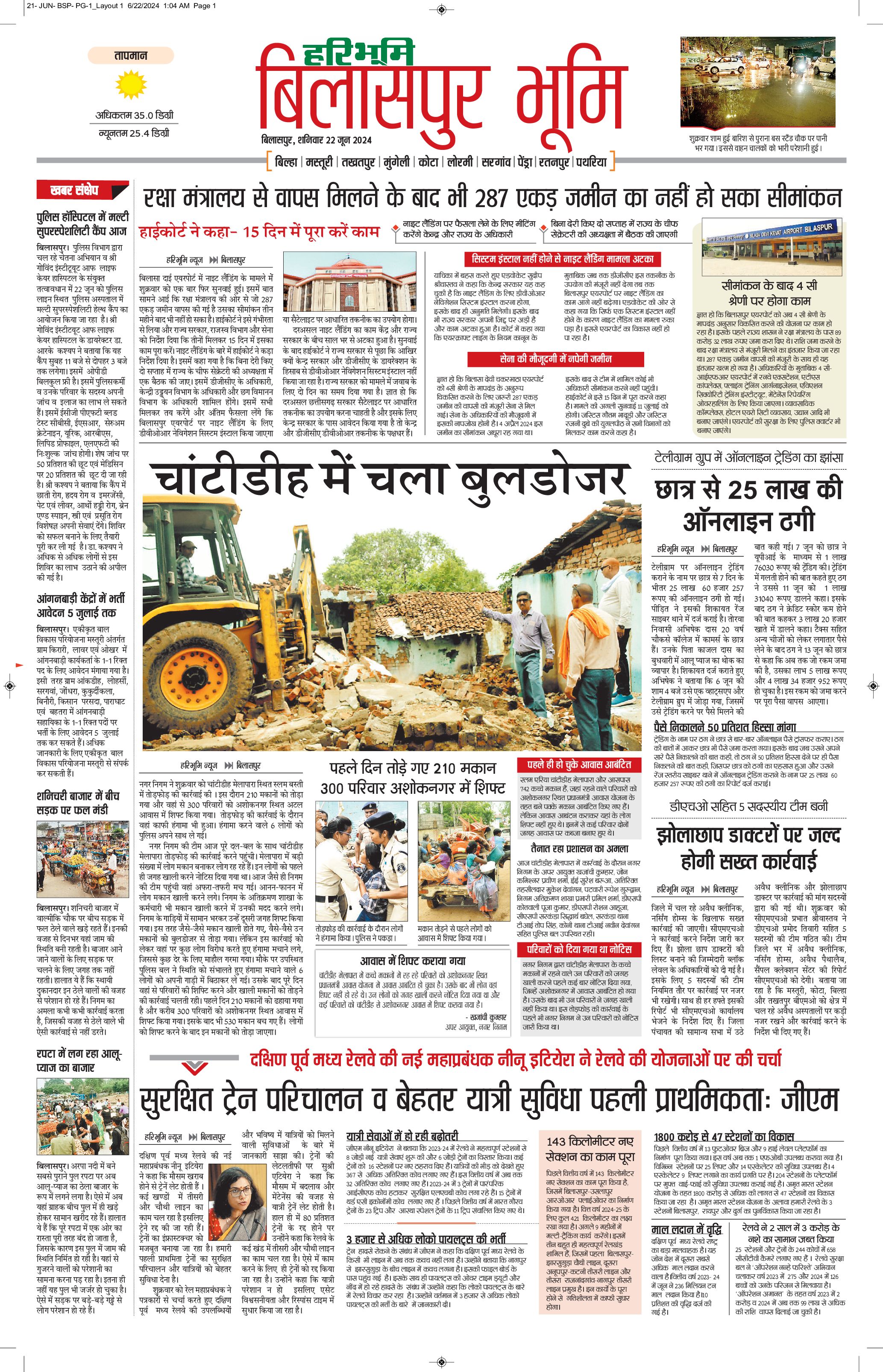 बिलासपुर भूमि - 22 Jun 2024 - - Page 1