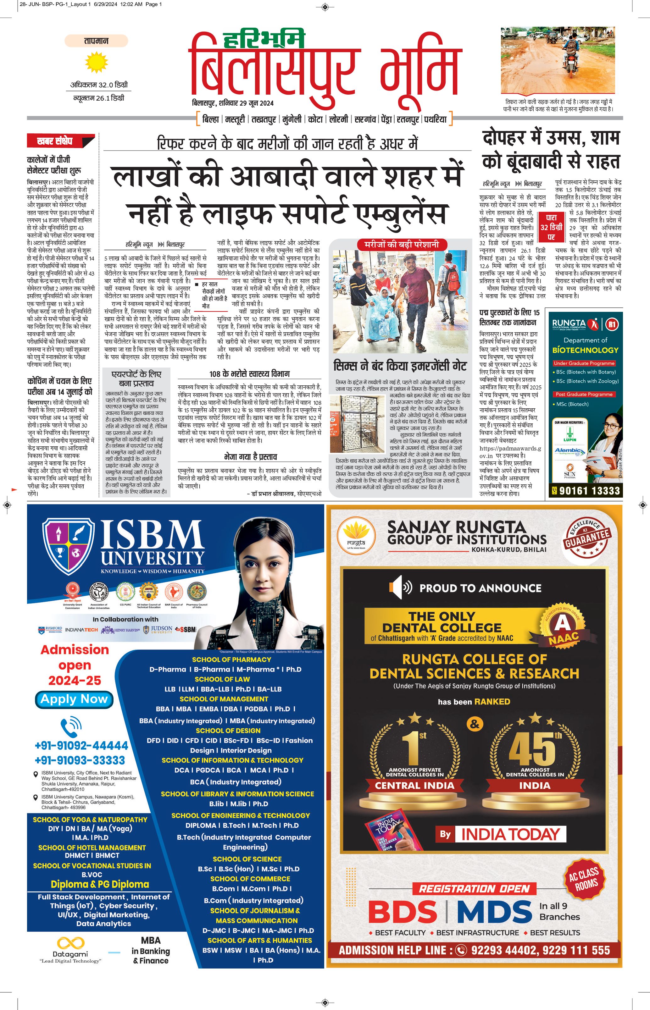 बिलासपुर भूमि - 29 Jun 2024 - - Page 1