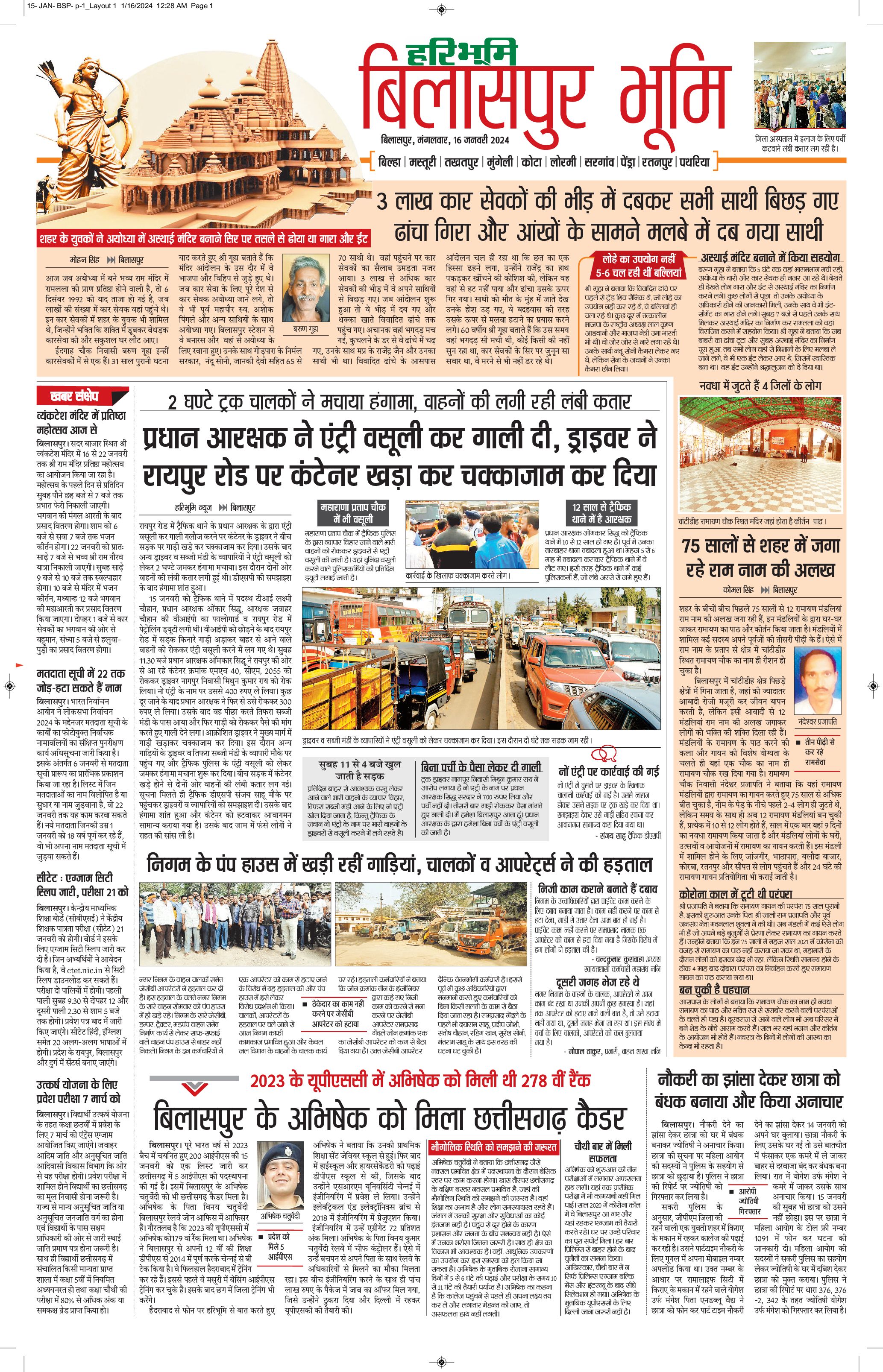 बिलासपुर भूमि - 16 Jan 2024 - - Page 1