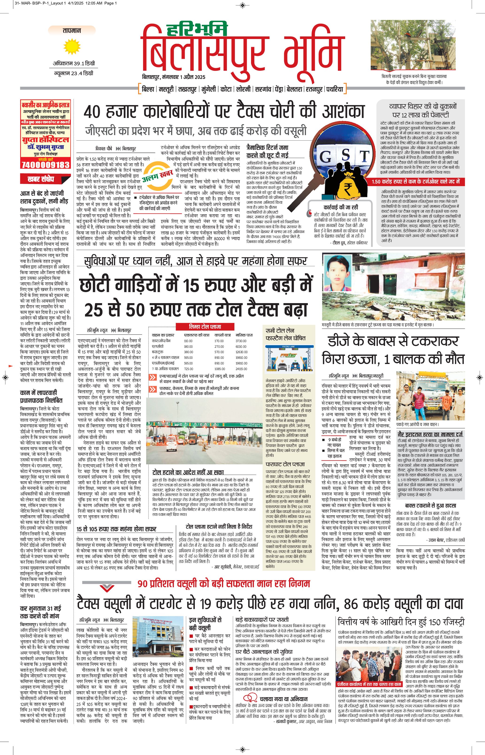 बिलासपुर भूमि - 01 Apr 2025 - - Page 1