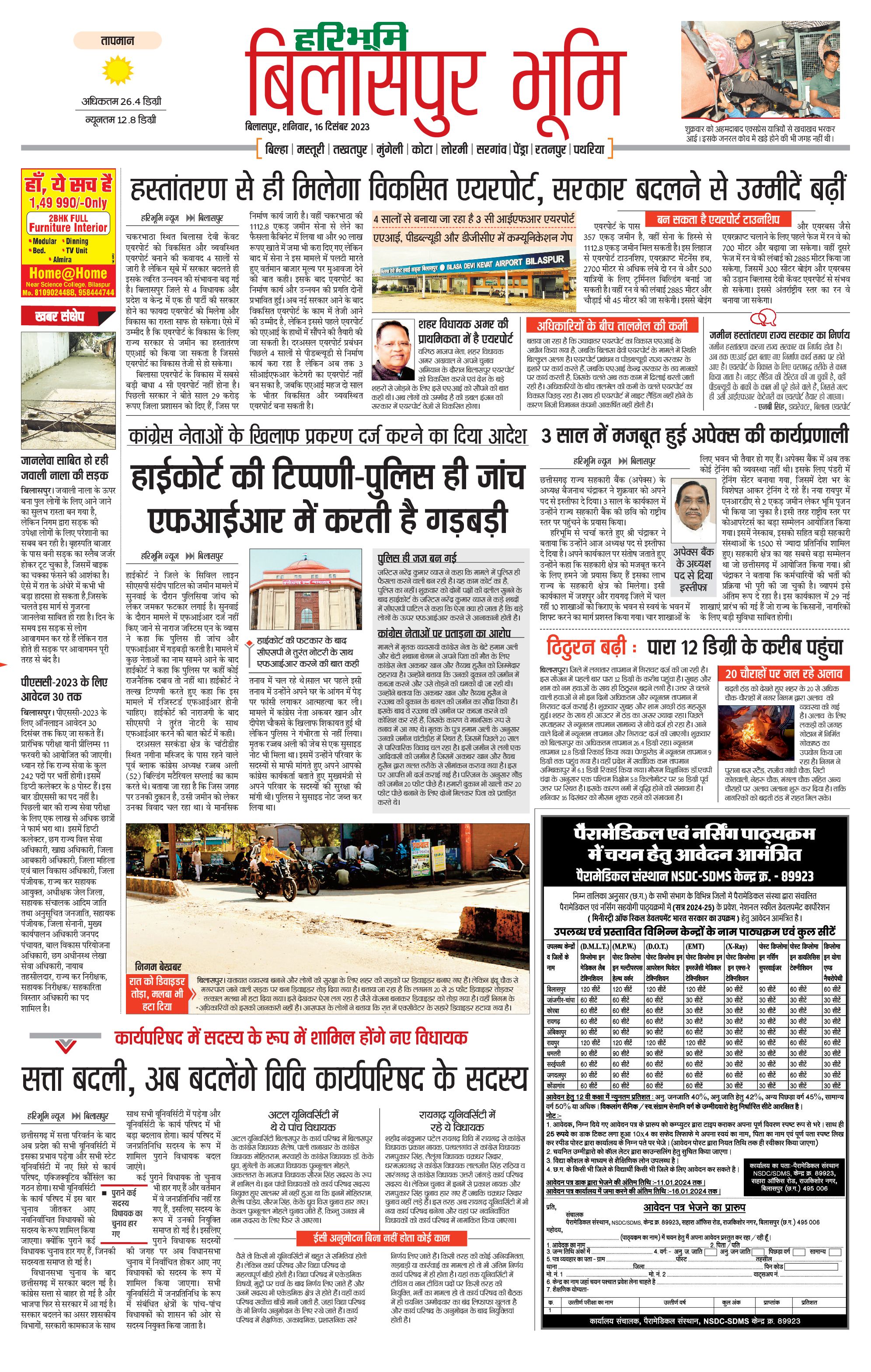 बिलासपुर भूमि - 18 Dec 2023 - - Page 1