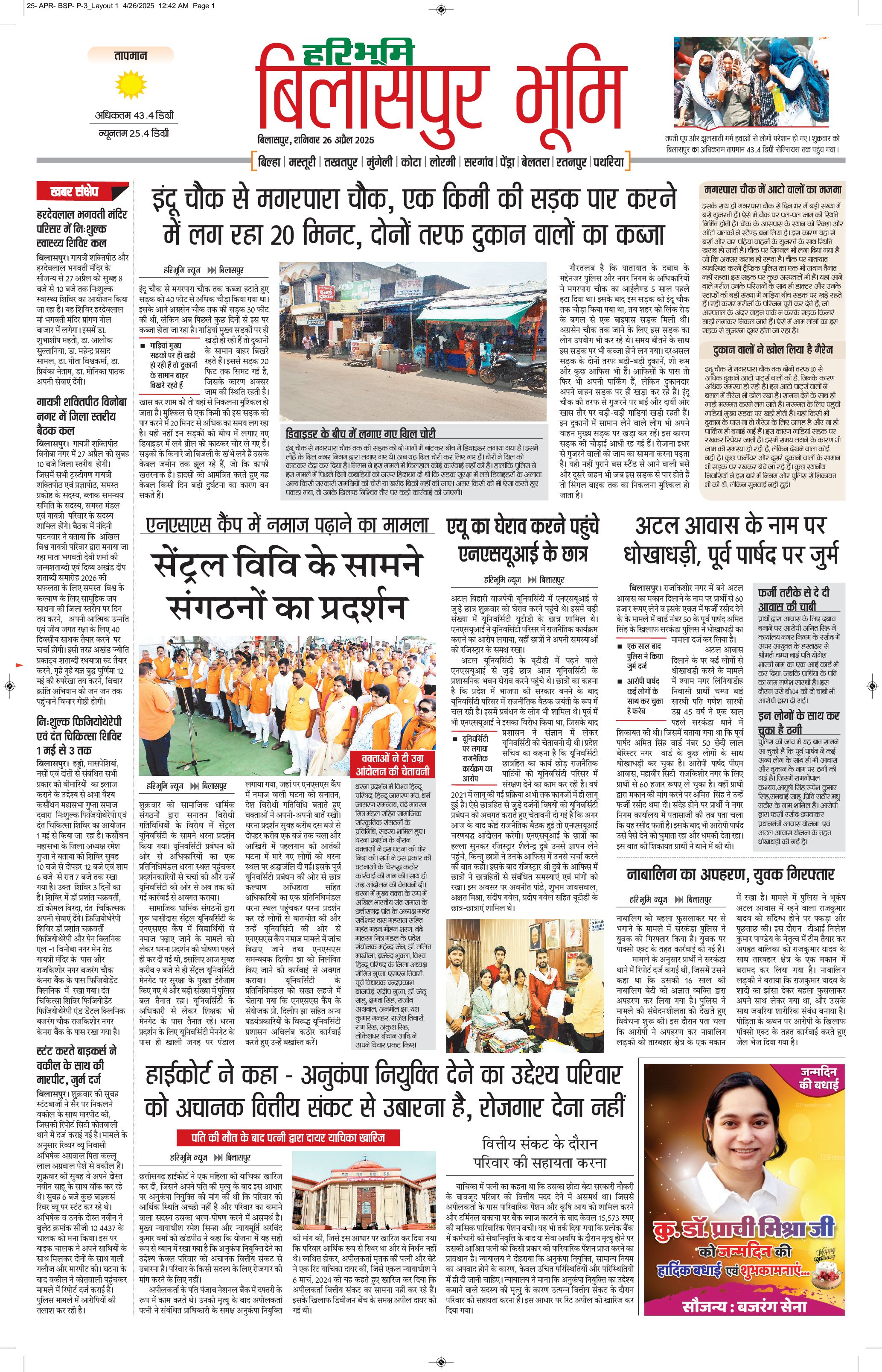 बिलासपुर भूमि - 26 Apr 2025 - - Page 1