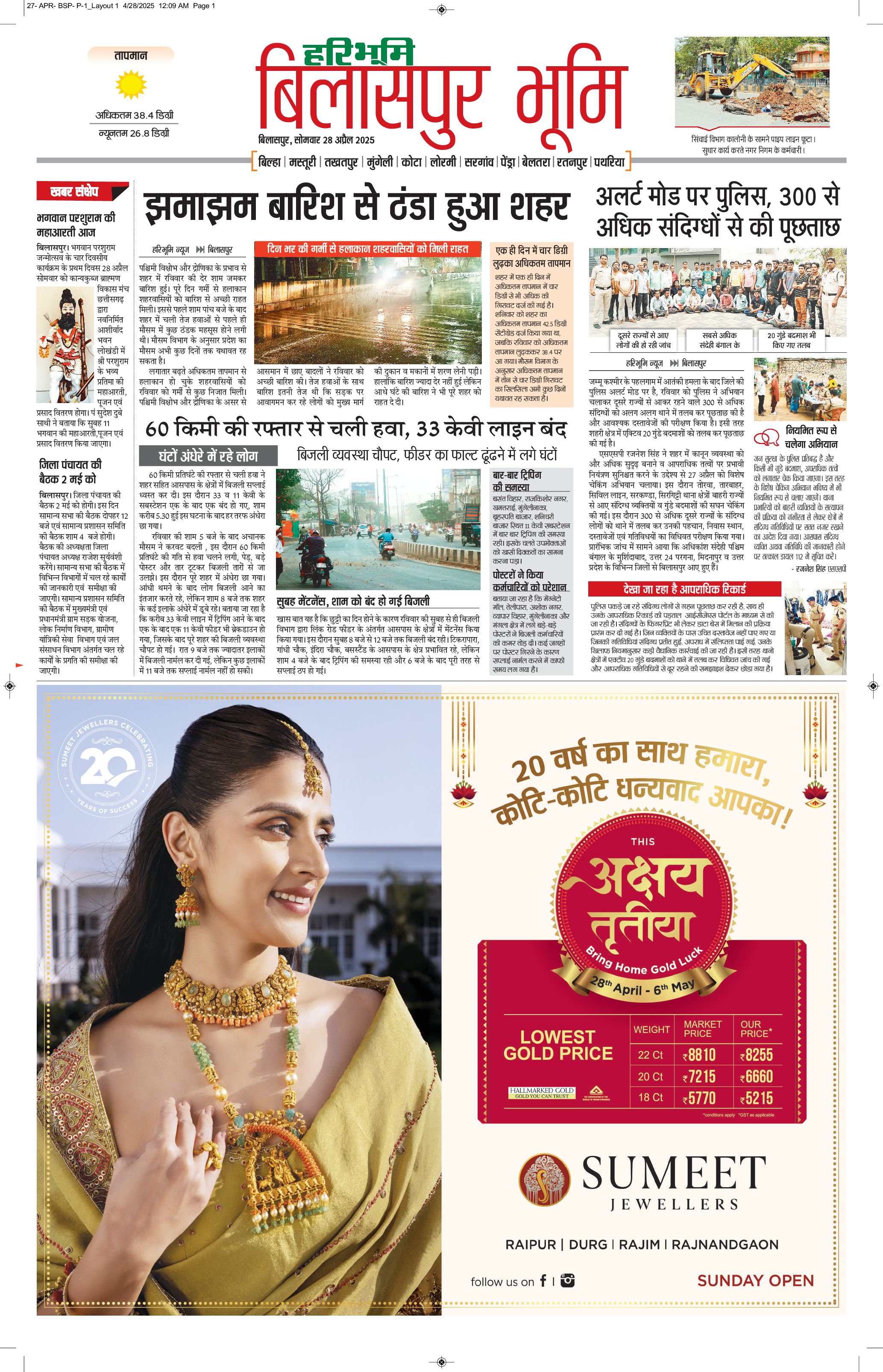 बिलासपुर भूमि - 28 Apr 2025 - - Page 1