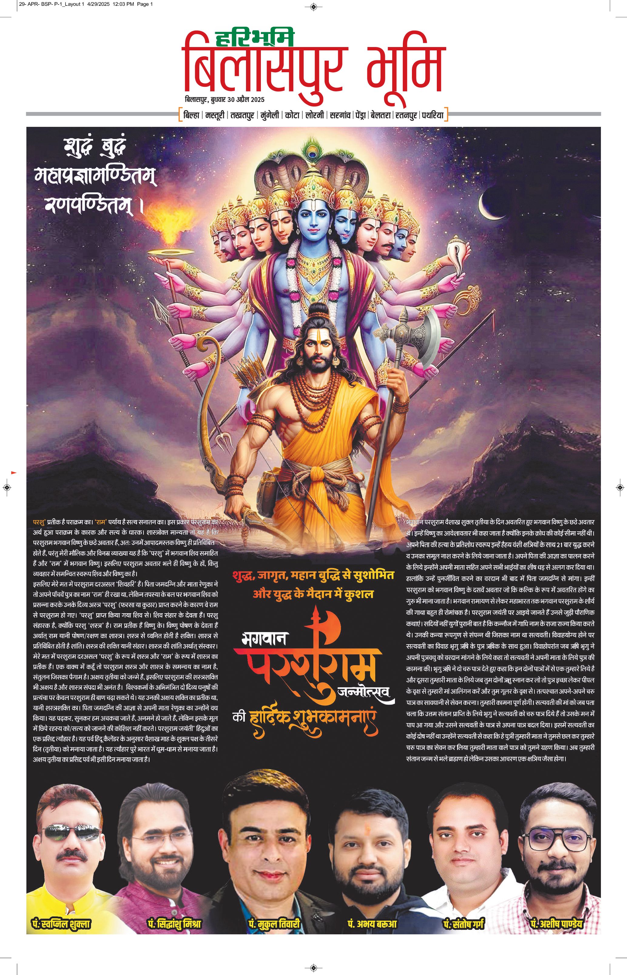 बिलासपुर भूमि - 30 Apr 2025 - - Page 1