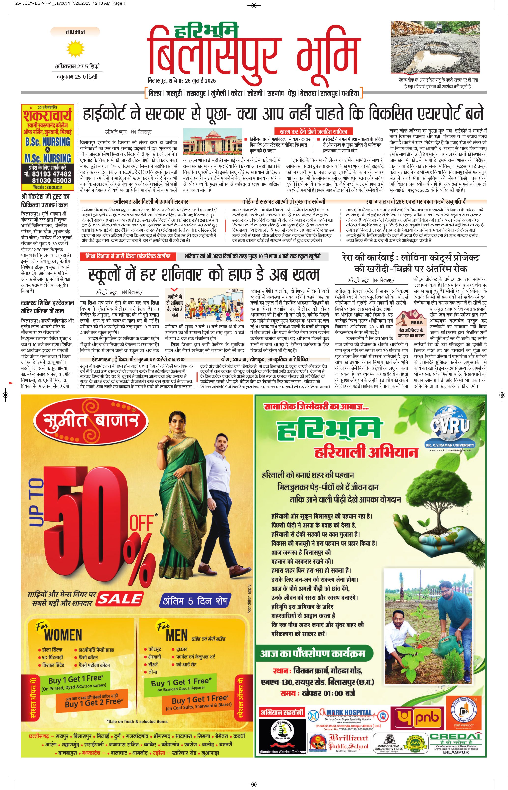 बिलासपुर भूमि - 26 Jul 2025 - - Page 1
