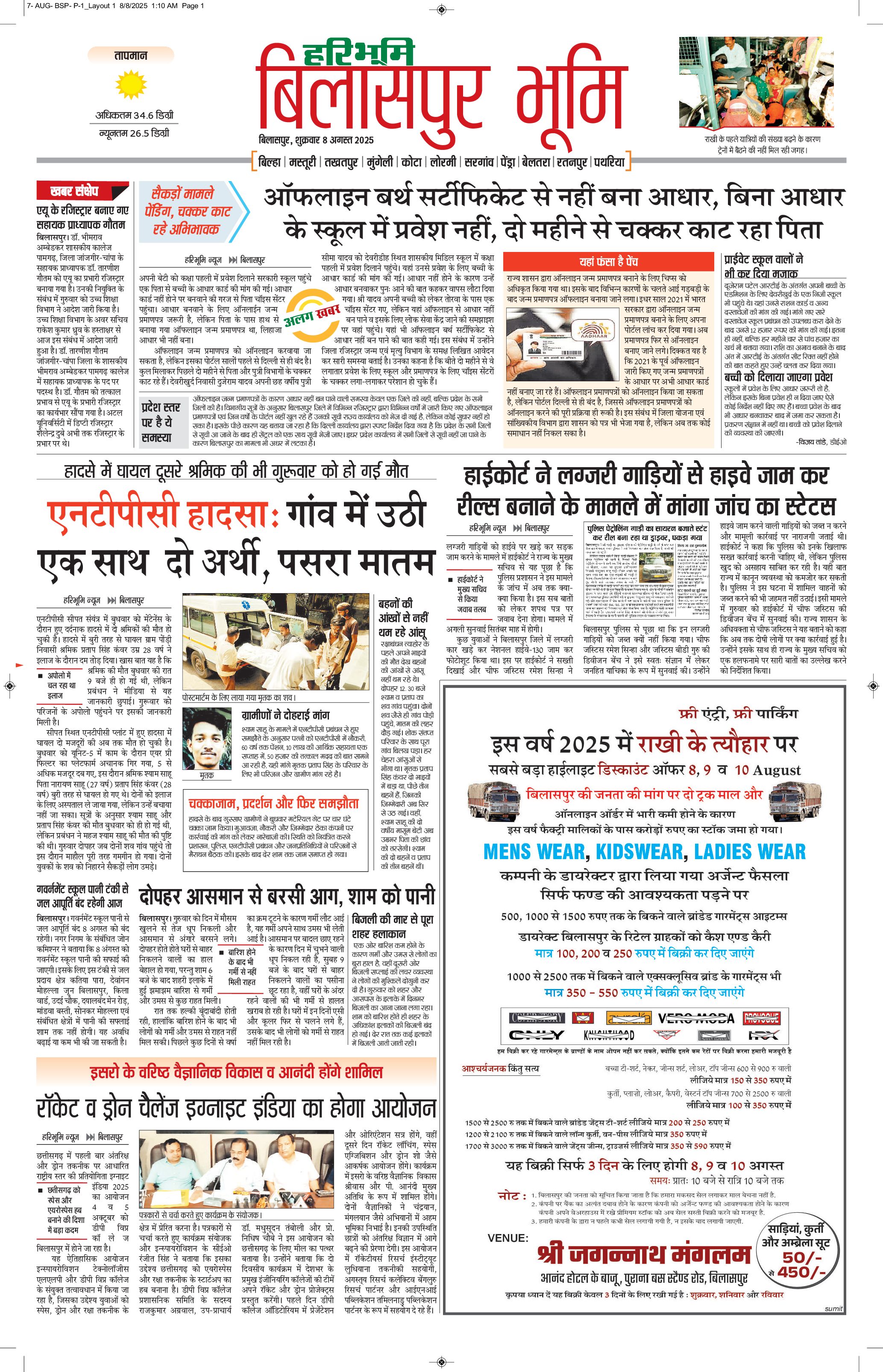 बिलासपुर भूमि - 08 Aug 2025 - - Page 1