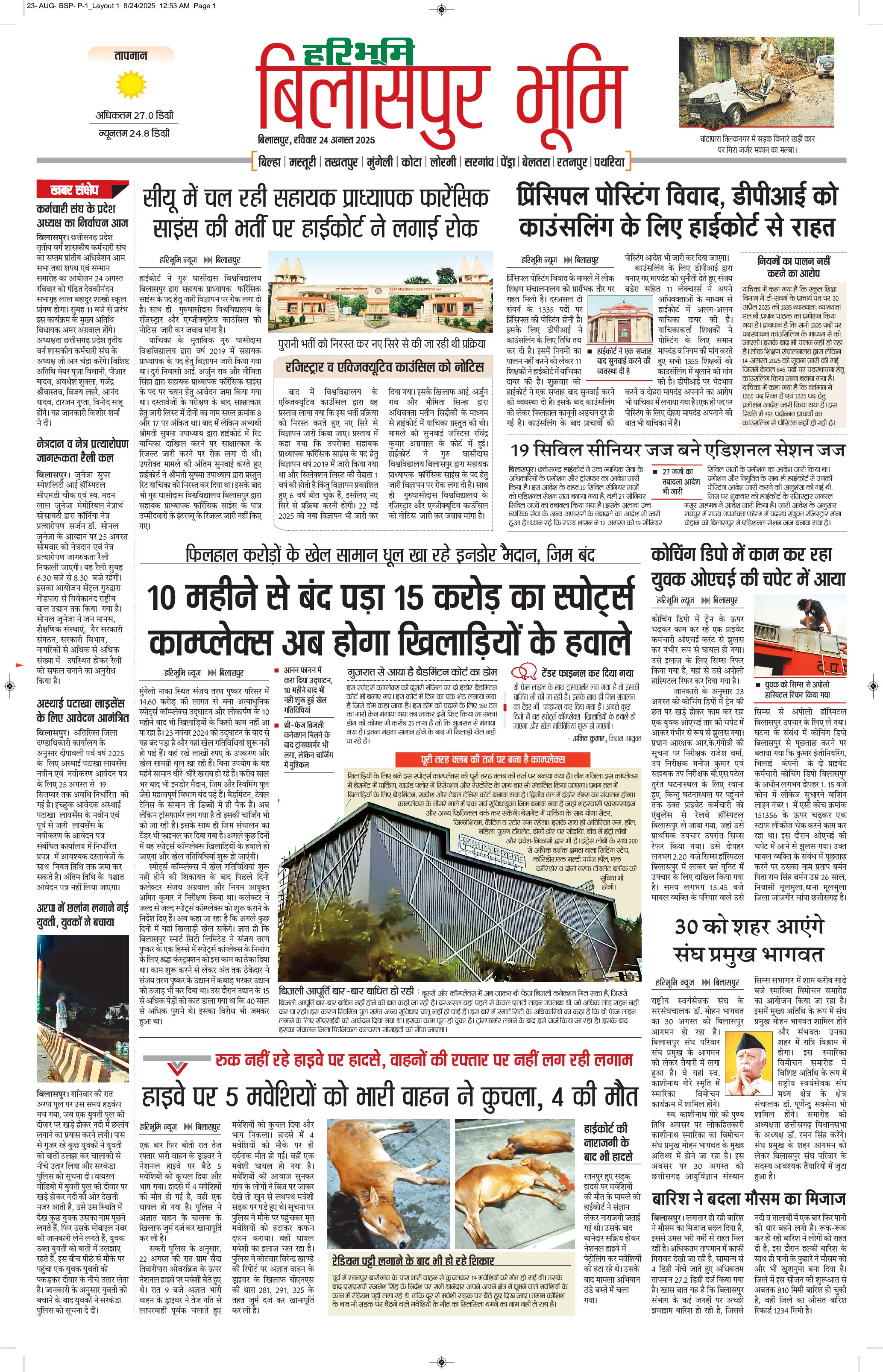 बिलासपुर भूमि - 24 Aug 2025 - - Page 1
