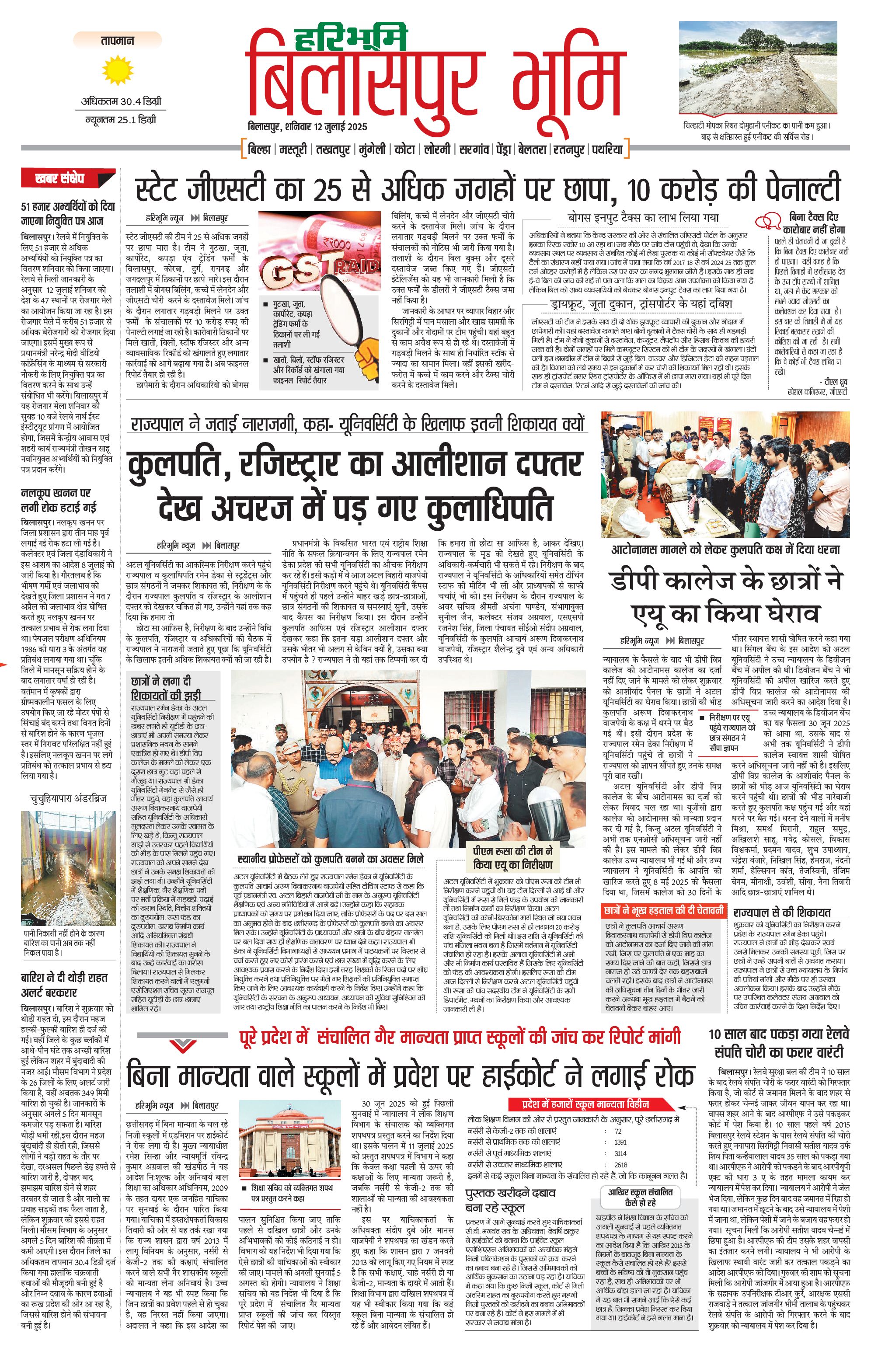 बिलासपुर भूमि - 12 Jul 2025 - - Page 1