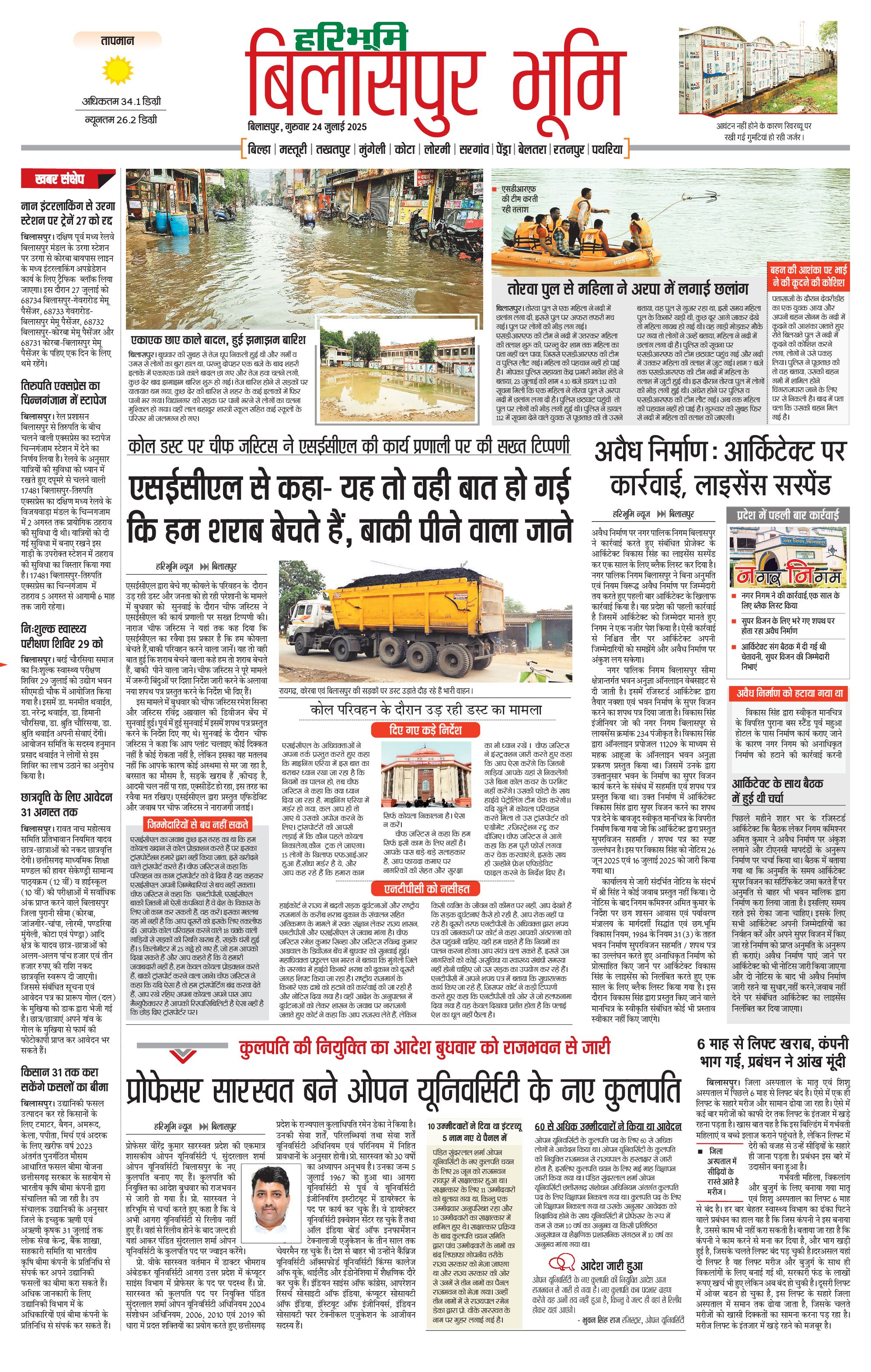 बिलासपुर भूमि - 24 Jul 2025 - - Page 1
