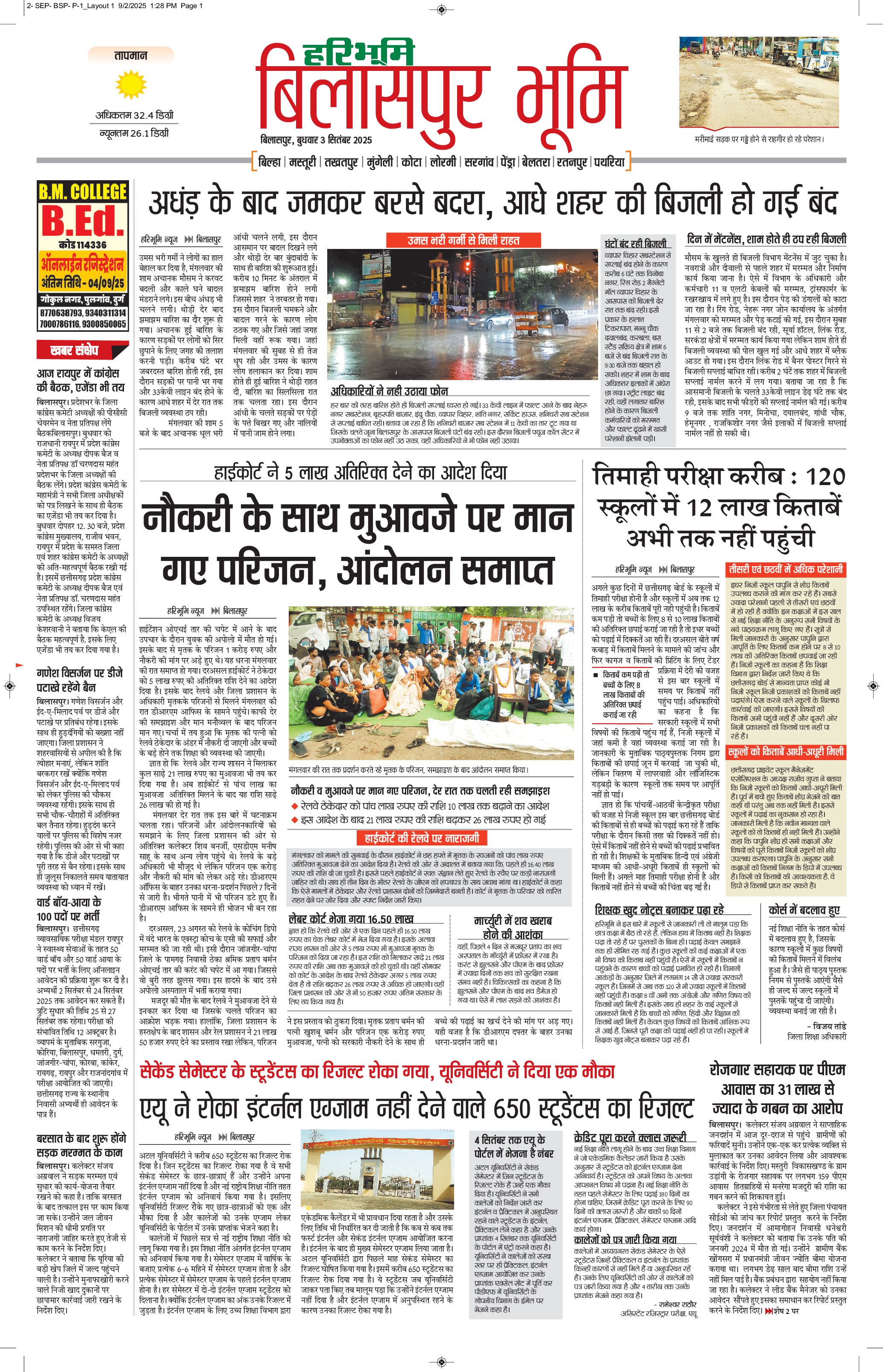 बिलासपुर भूमि - 03 Sep 2025 - - Page 1