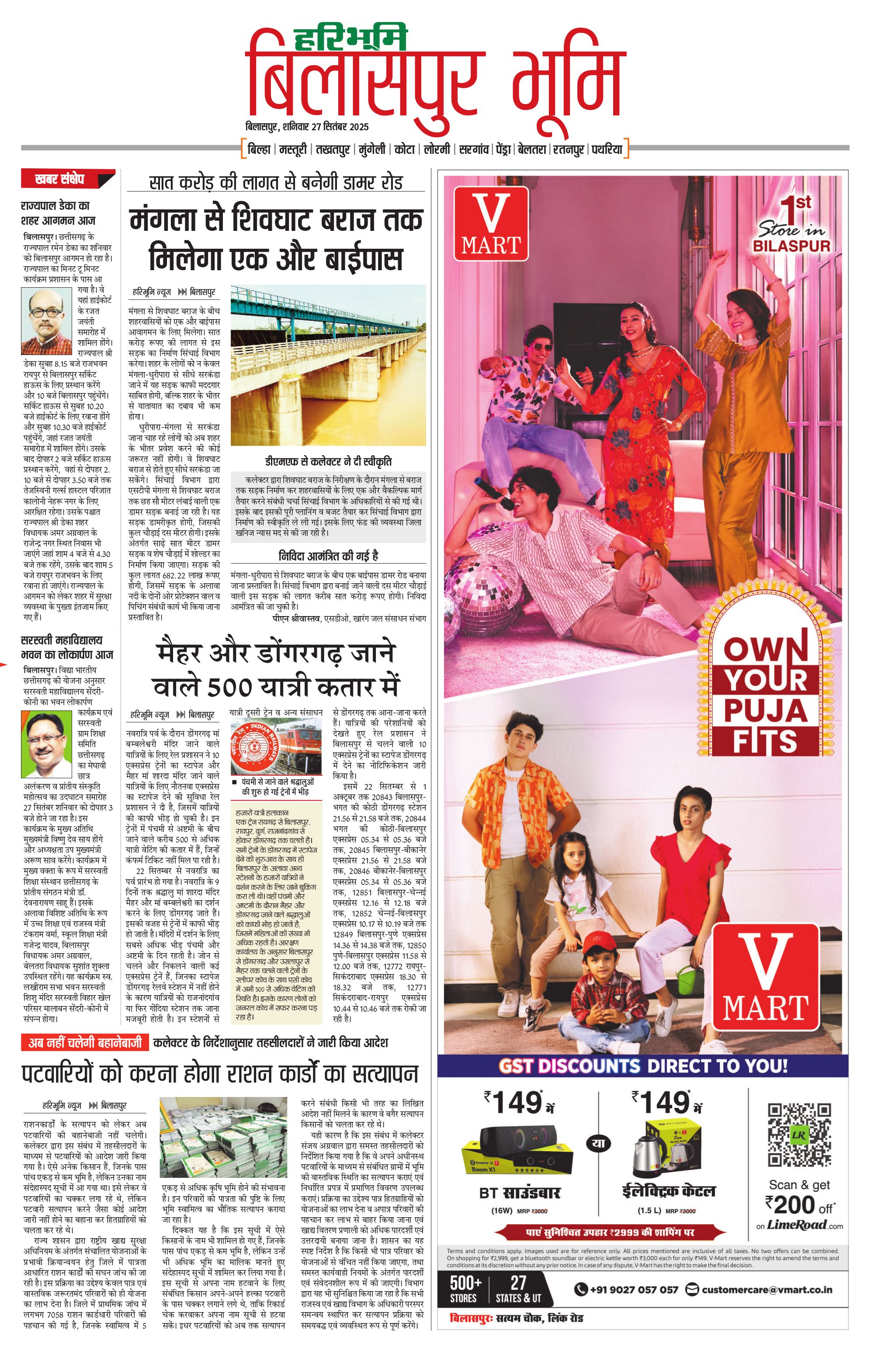 बिलासपुर भूमि - 27 Sep 2025 - - Page 1