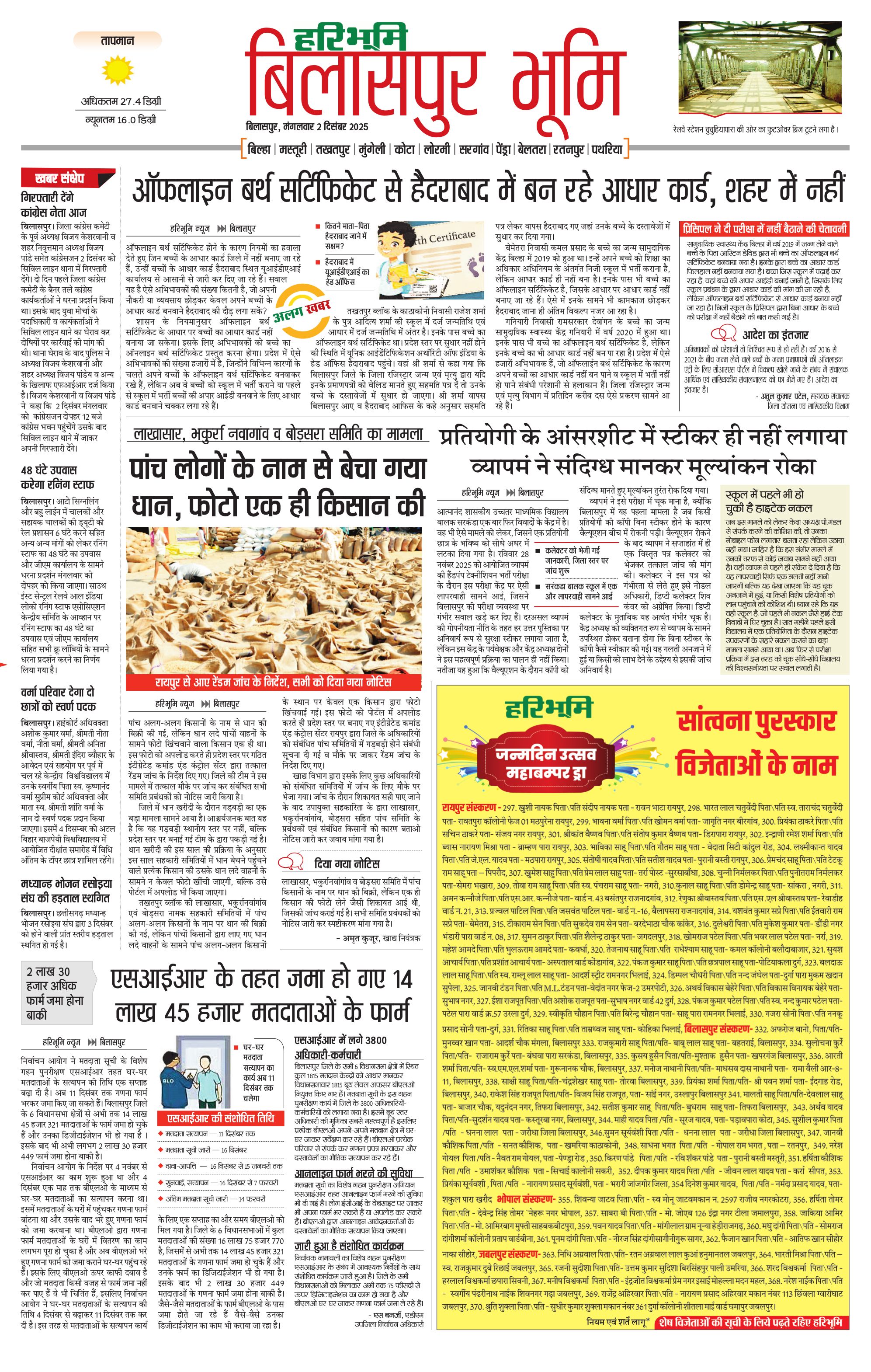 बिलासपुर भूमि - 02 Dec 2025 - - Page 1