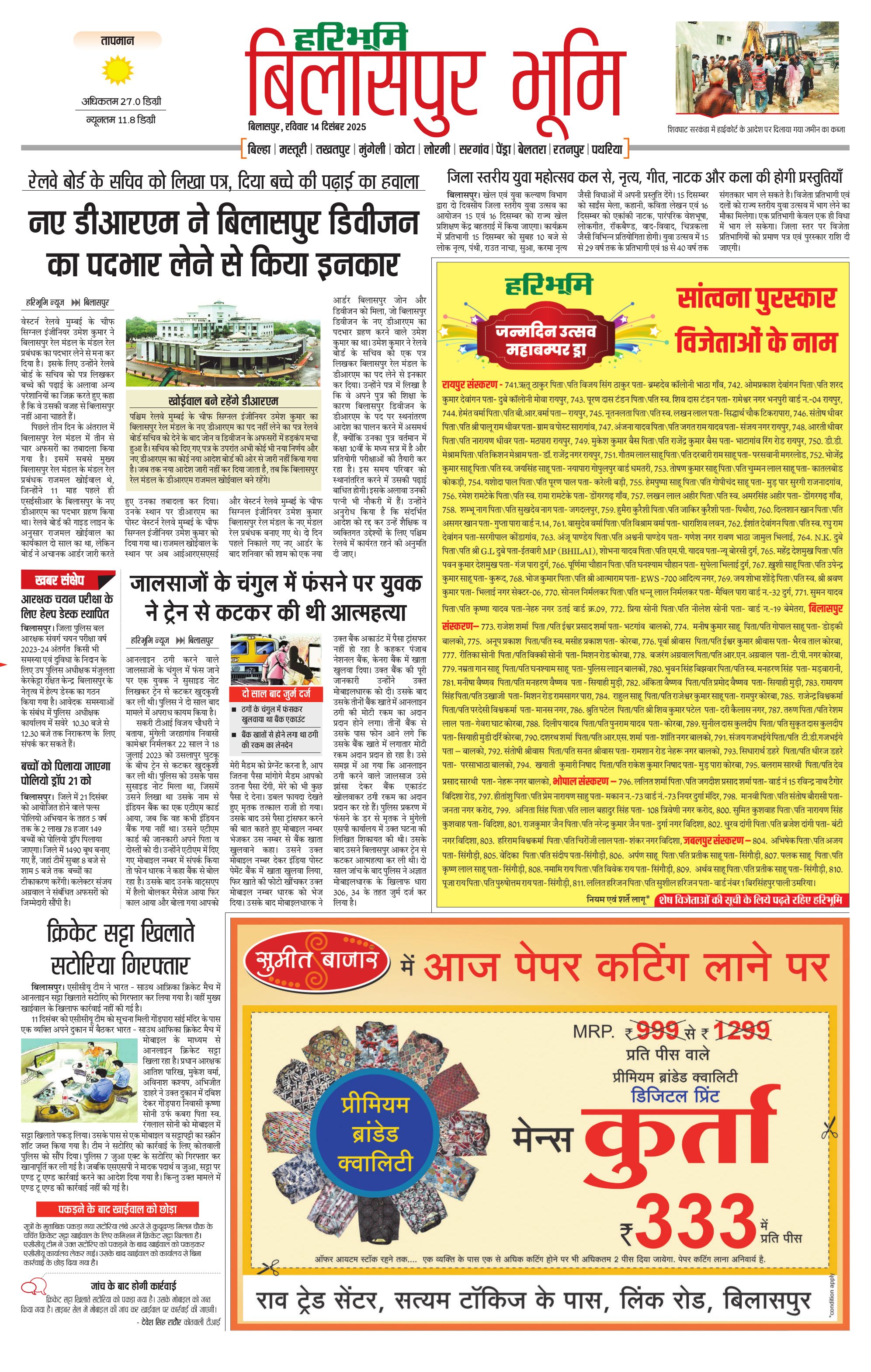 बिलासपुर भूमि - 14 Dec 2025 - - Page 1