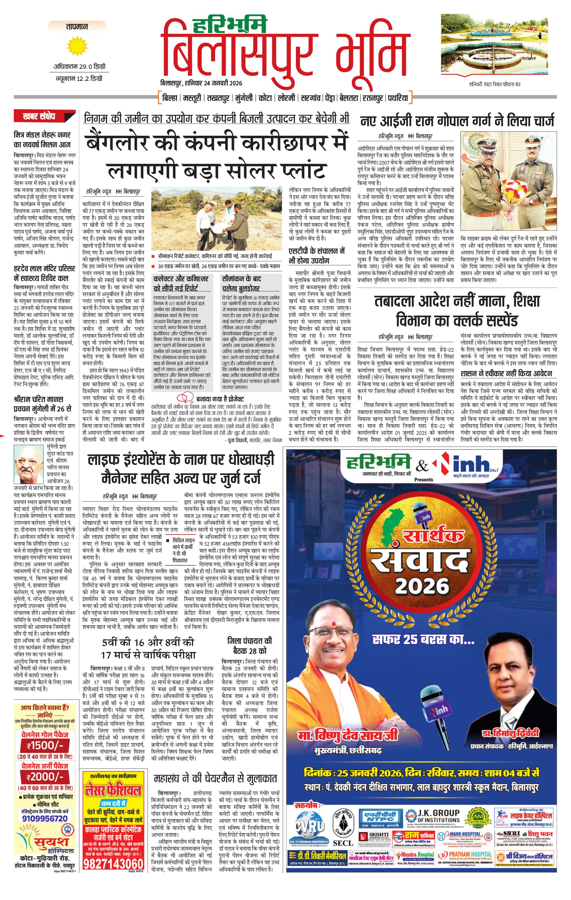 बिलासपुर भूमि - 24 Jan 2026 - - Page 1