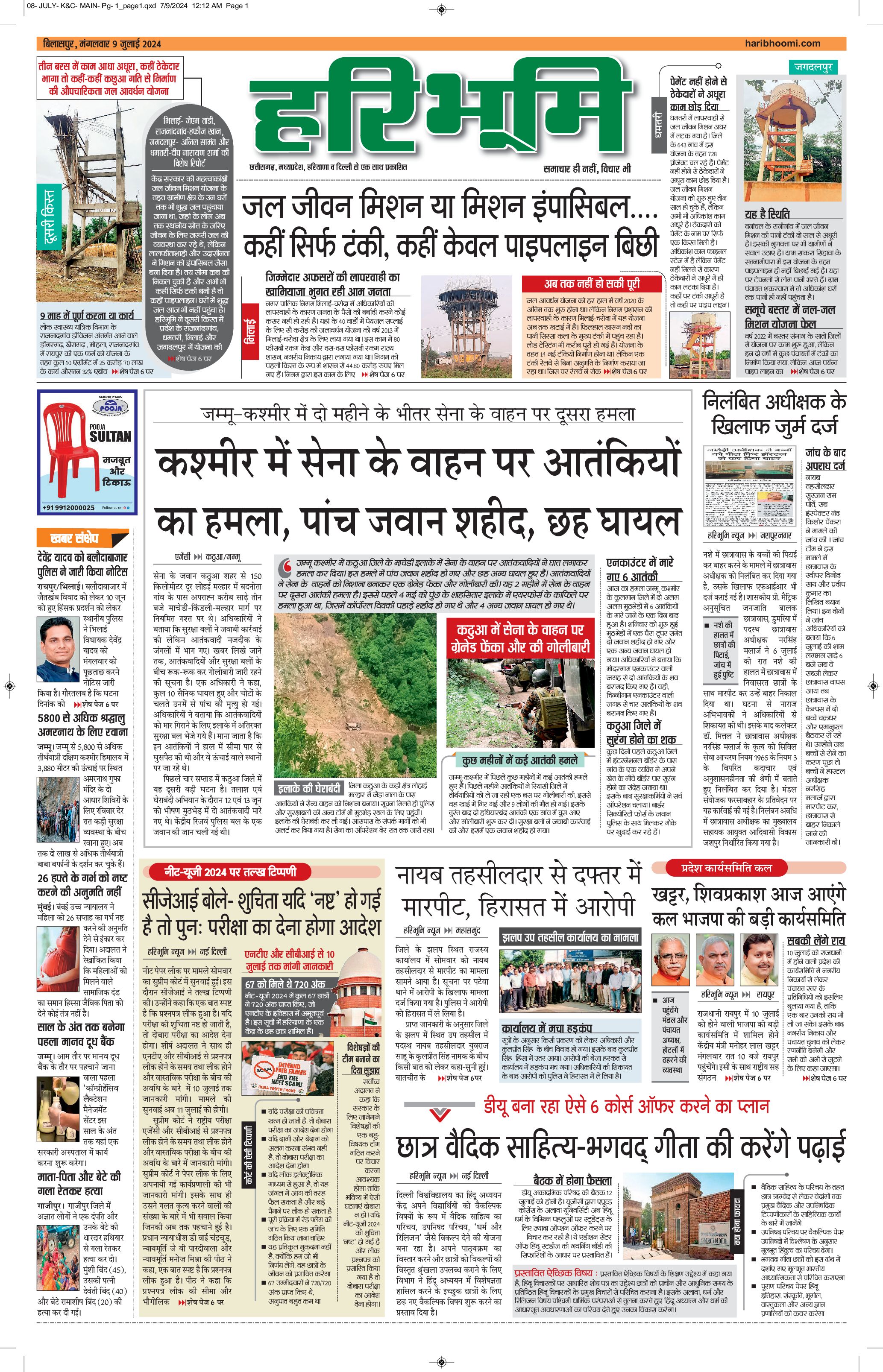 बिलासपुर मुख्य संस्करण - 09 Jul 2024 - - Page 1