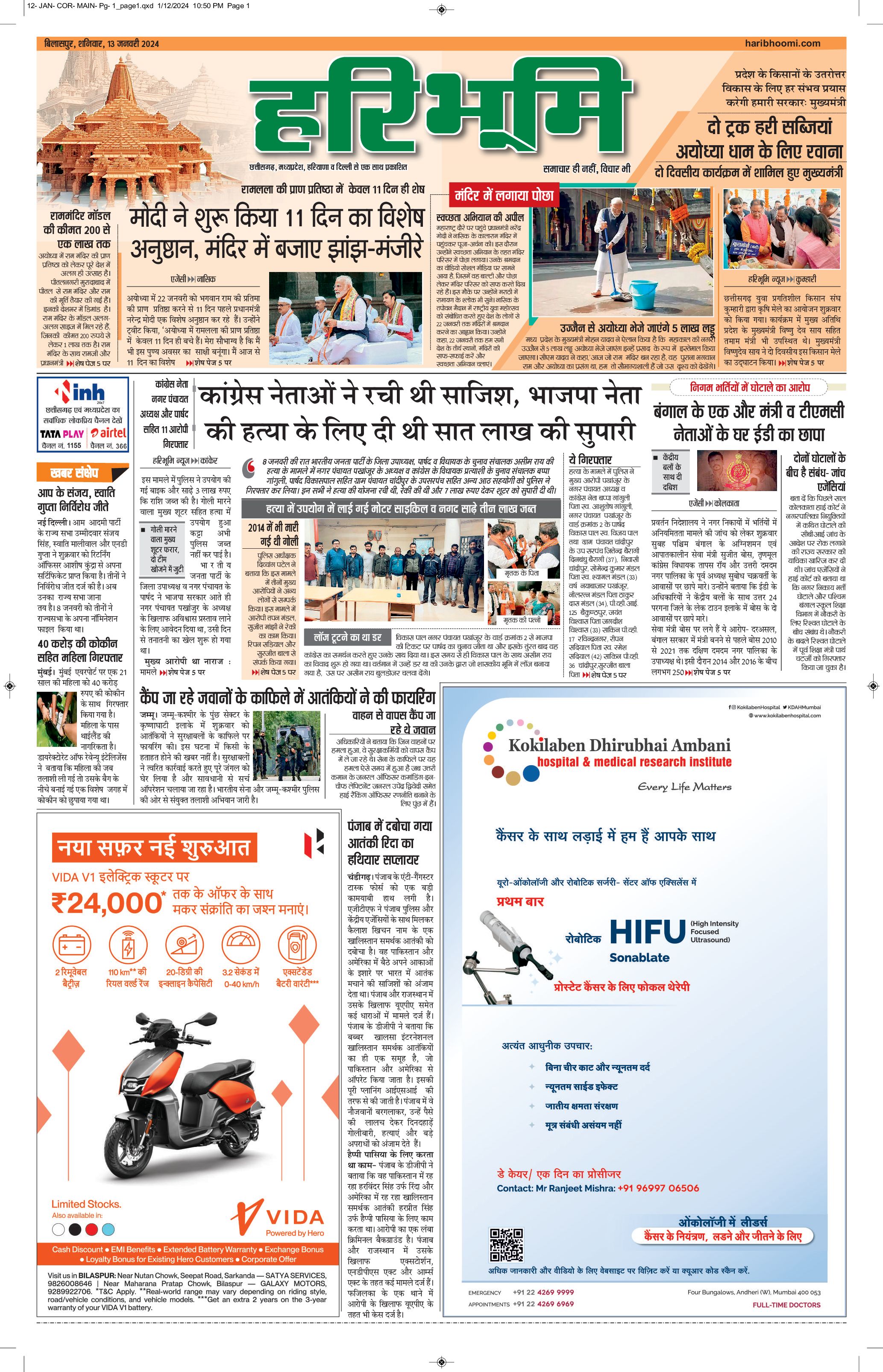 बिलासपुर मुख्य संस्करण - 13 Jan 2024 - - Page 1