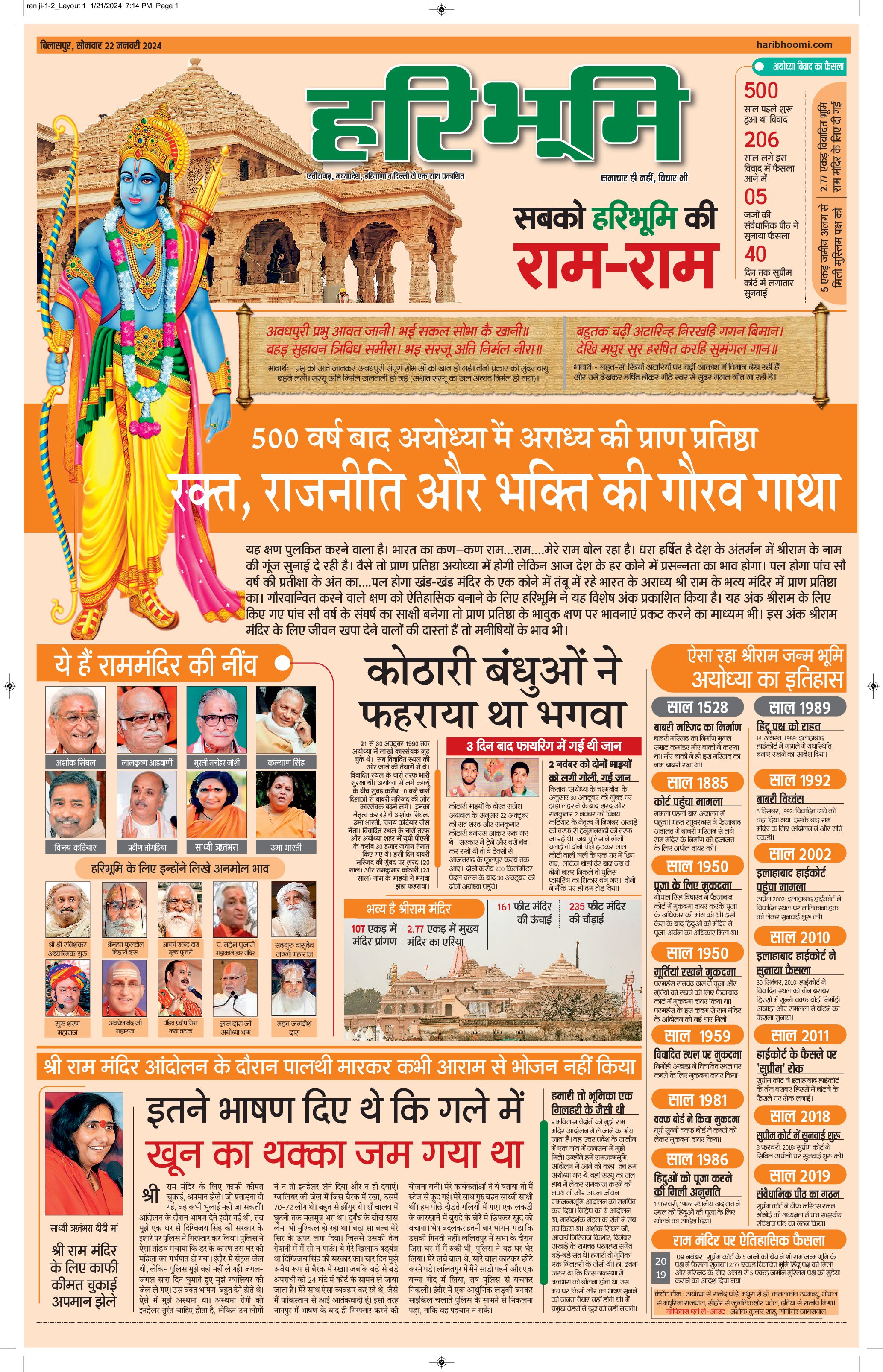 बिलासपुर मुख्य संस्करण - 22 Jan 2024 - - Page 1