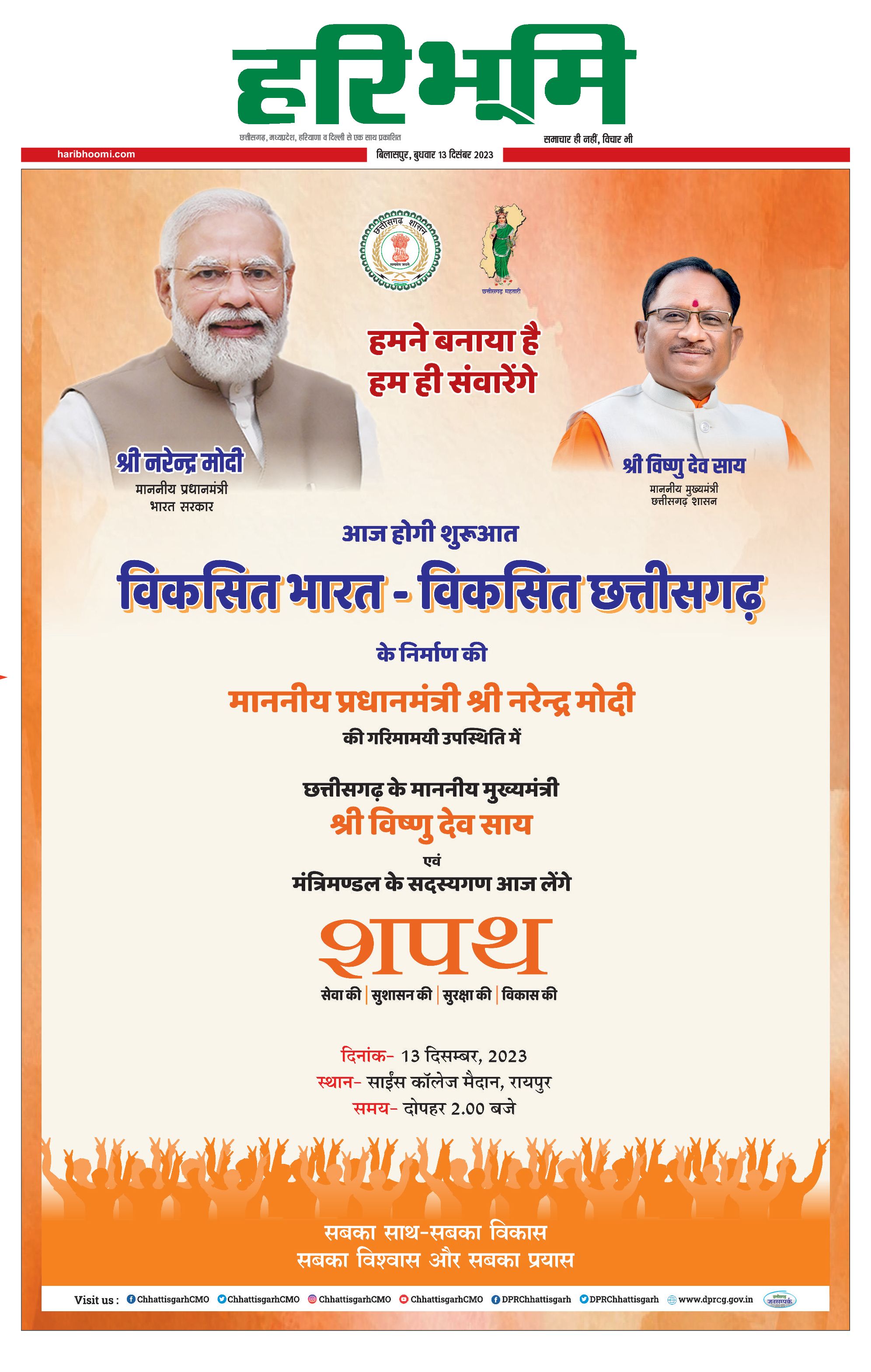 बिलासपुर मुख्य संस्करण - 13 Dec 2023 - - Page 1