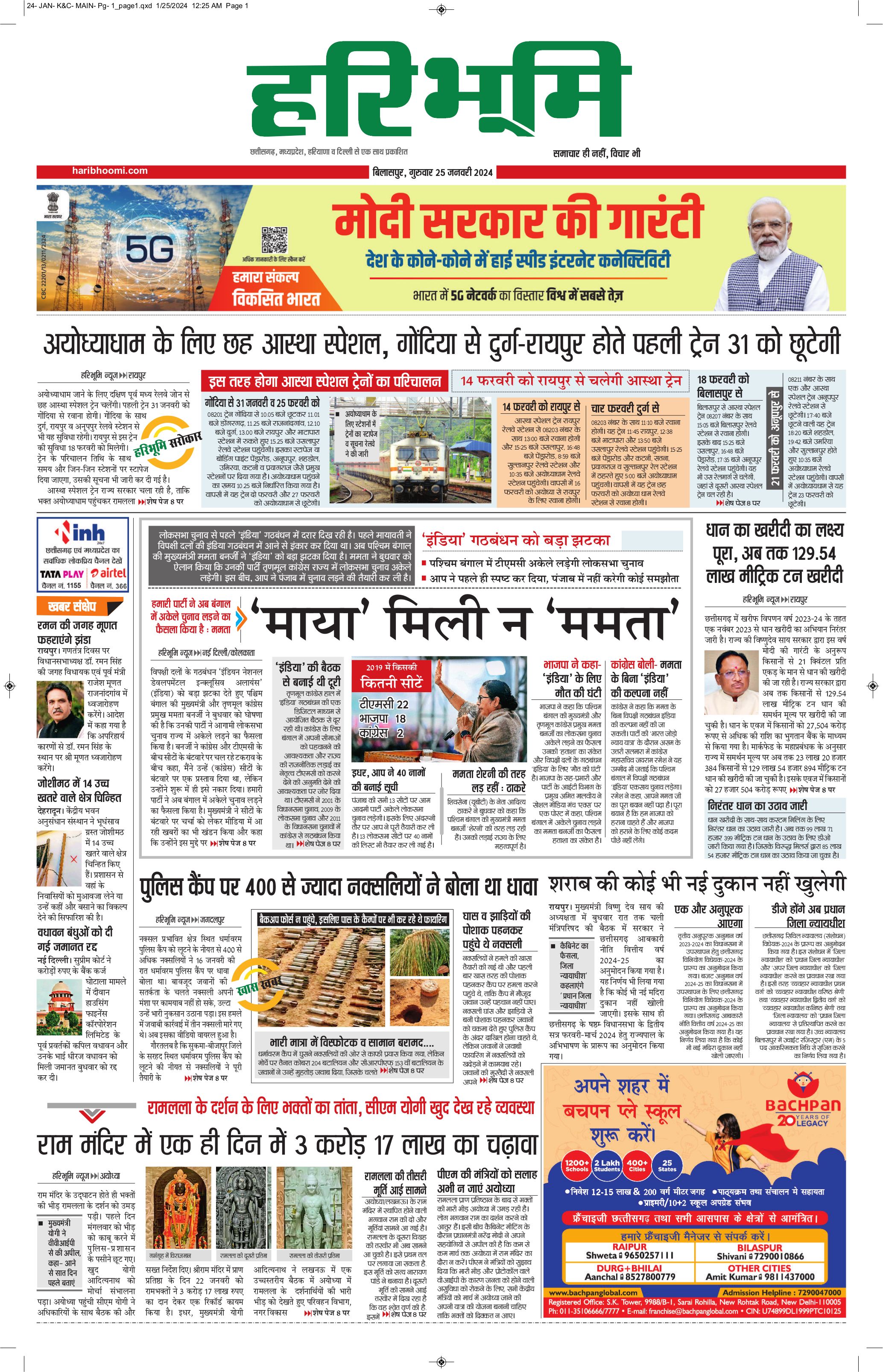 बिलासपुर मुख्य संस्करण - 25 Jan 2024 - - Page 1