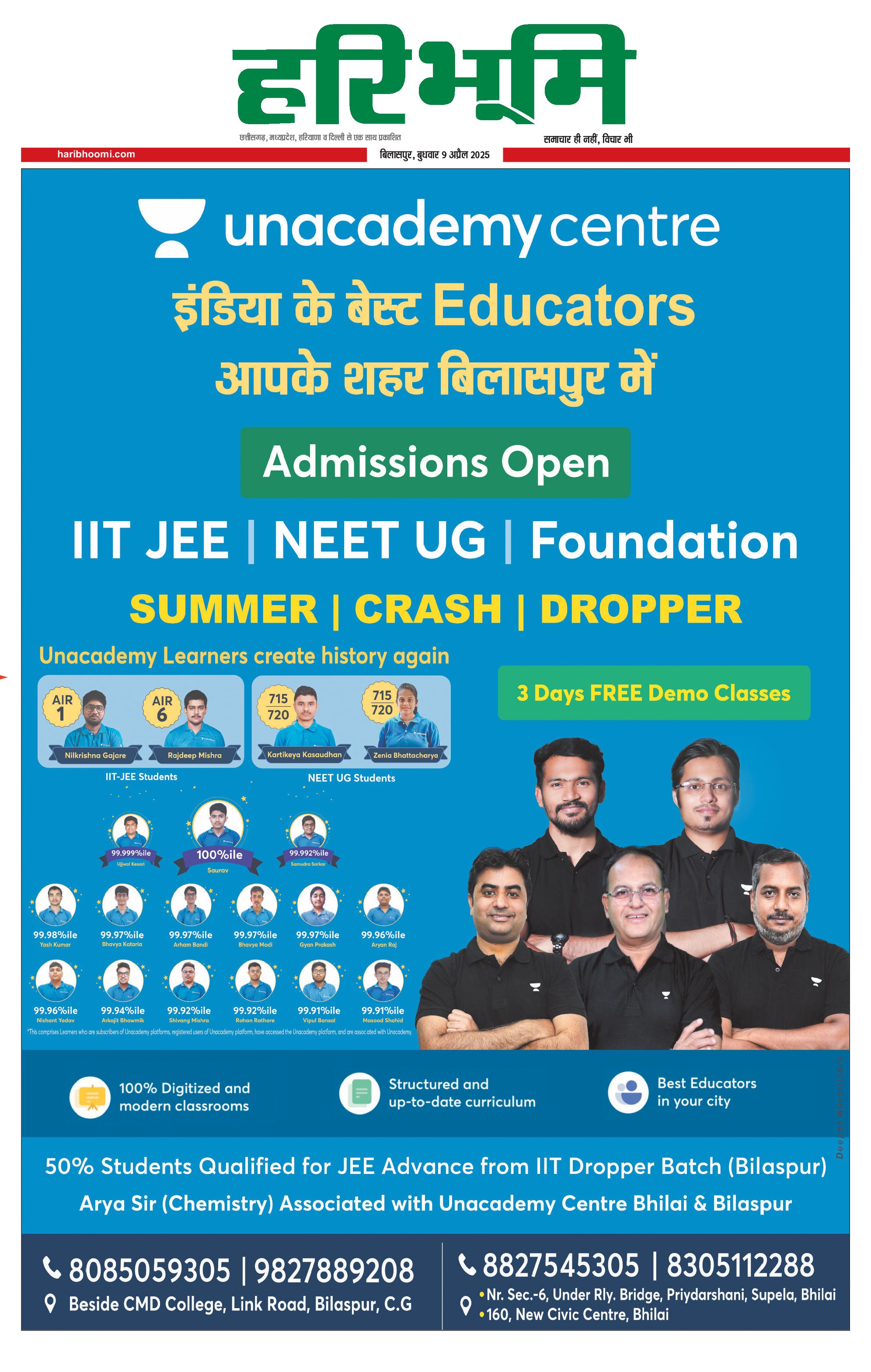 बिलासपुर मुख्य संस्करण - 09 Apr 2025 - - Page 1
