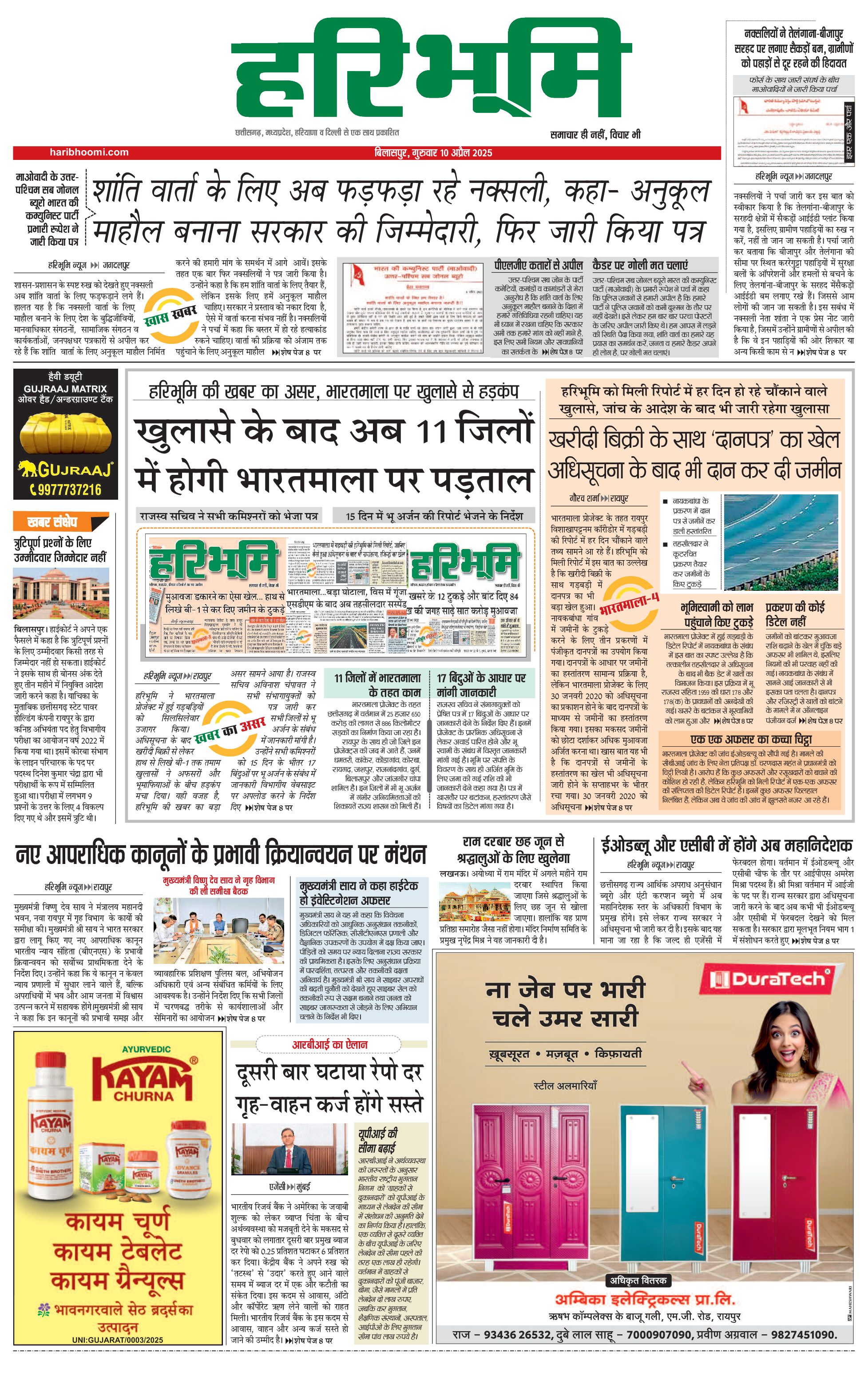 बिलासपुर मुख्य संस्करण - 10 Apr 2025 - - Page 1