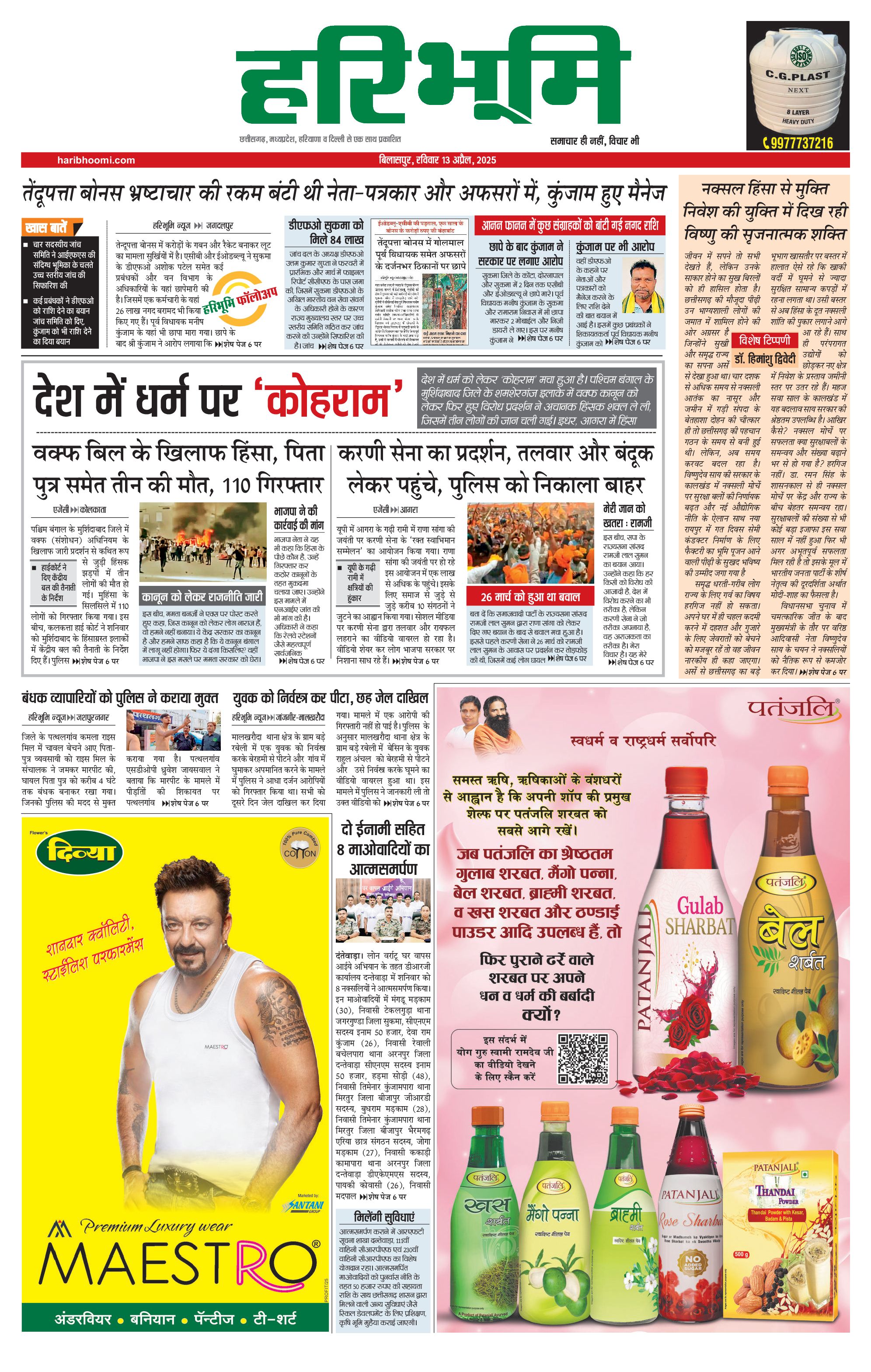 बिलासपुर मुख्य संस्करण - 13 Apr 2025 - - Page 1