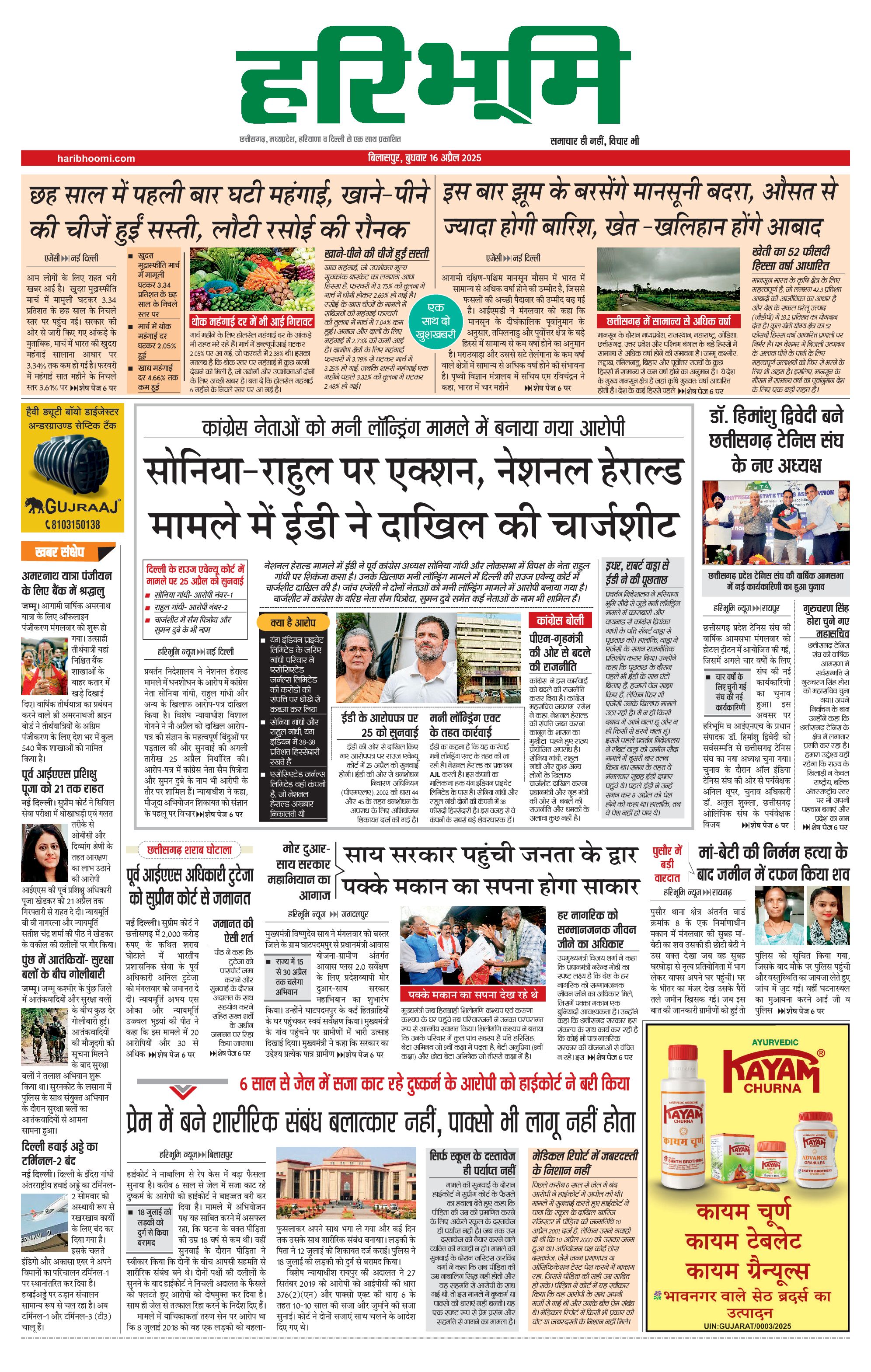 बिलासपुर मुख्य संस्करण - 16 Apr 2025 - - Page 1
