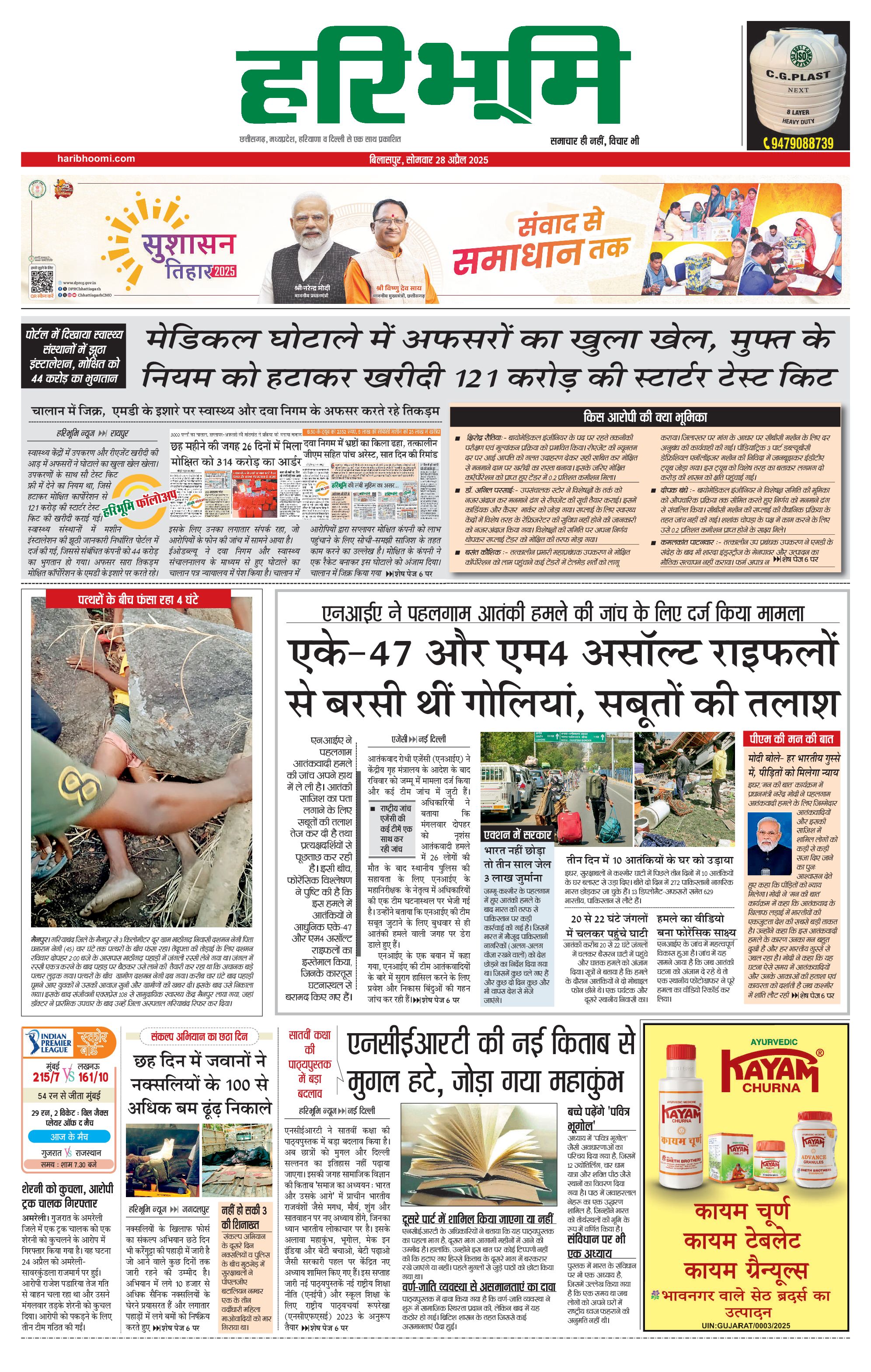 बिलासपुर मुख्य संस्करण - 28 Apr 2025 - - Page 1