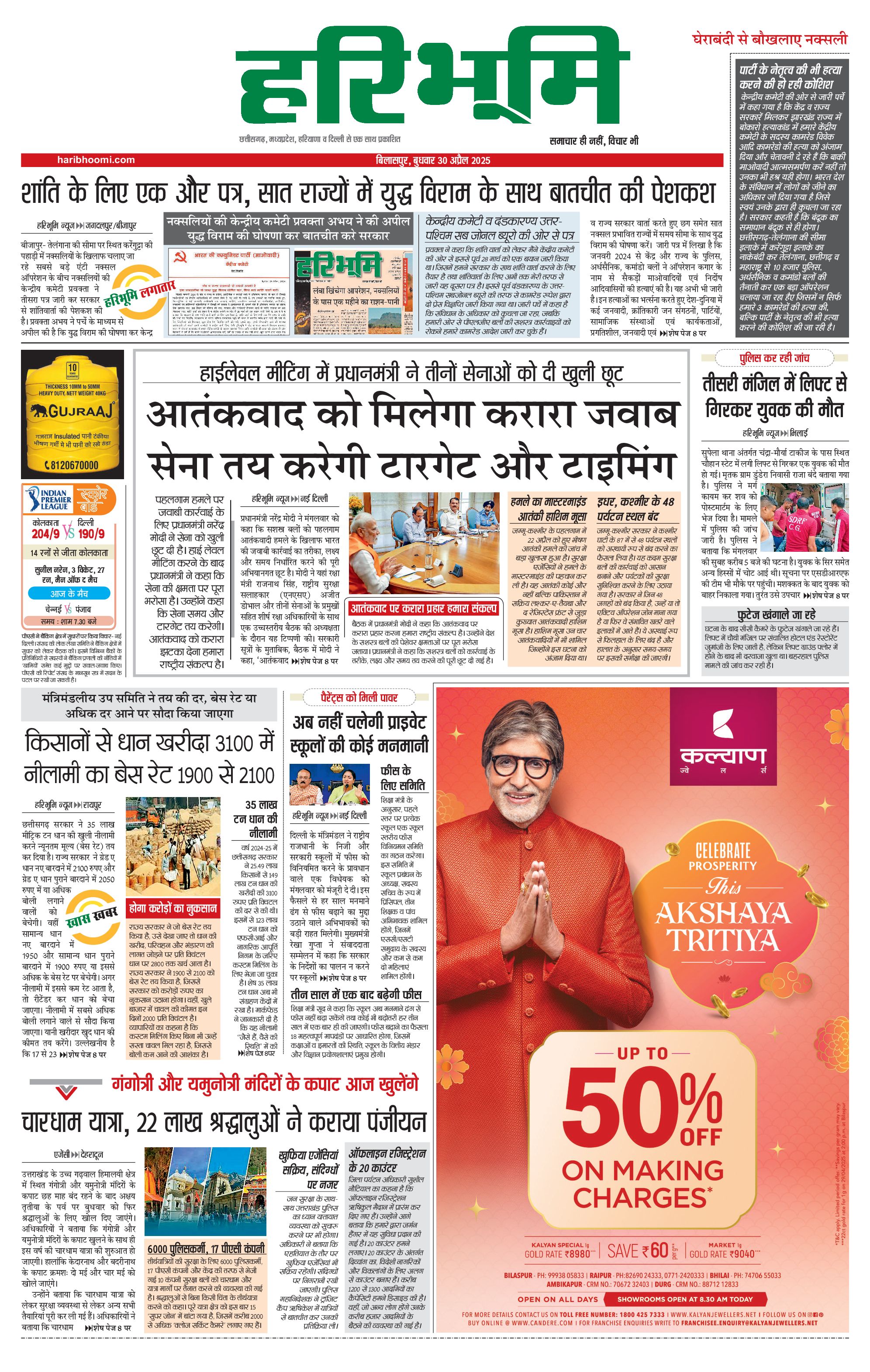 बिलासपुर मुख्य संस्करण - 30 Apr 2025 - - Page 1