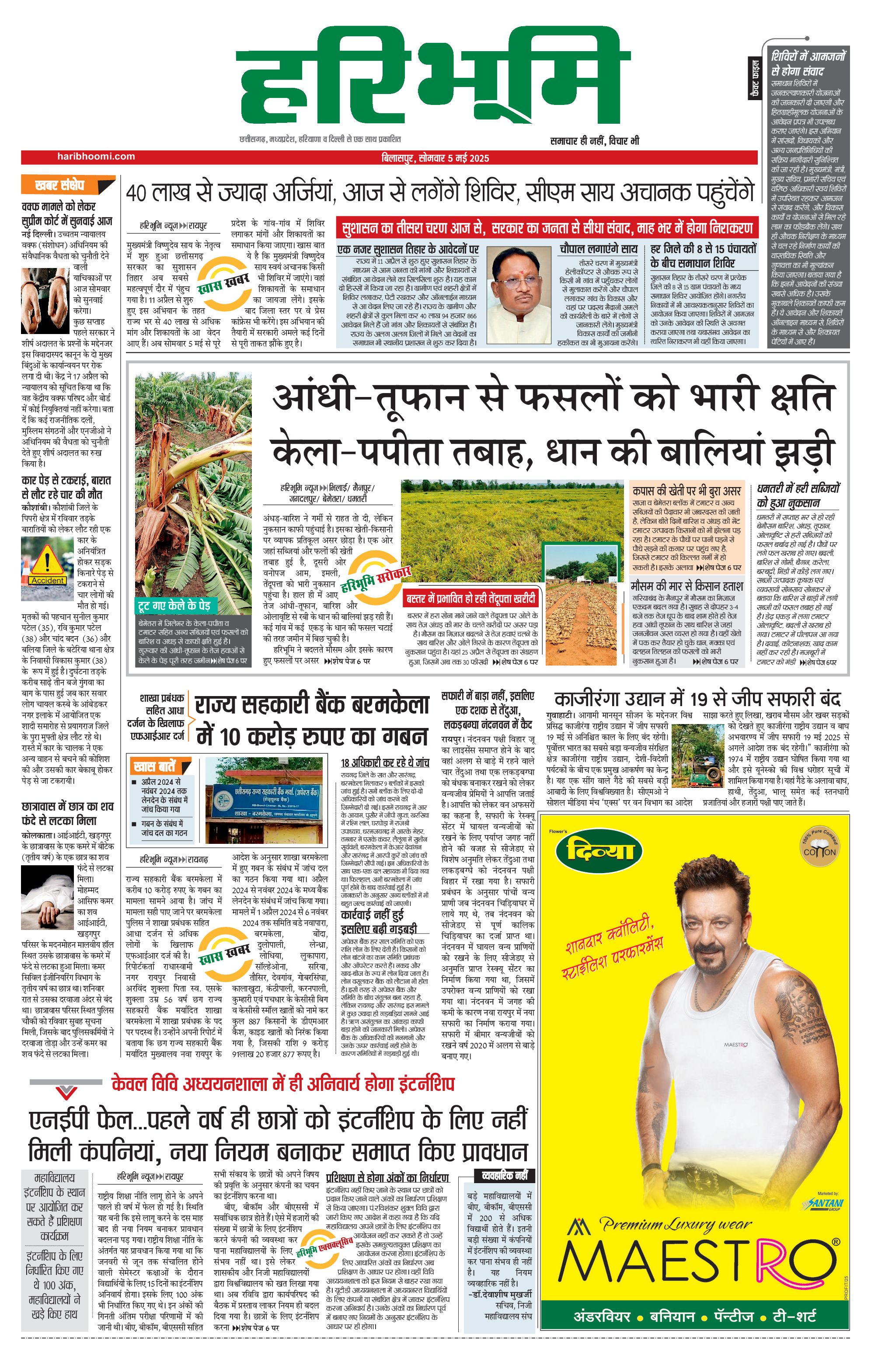 बिलासपुर मुख्य संस्करण - 05 May 2025 - - Page 1