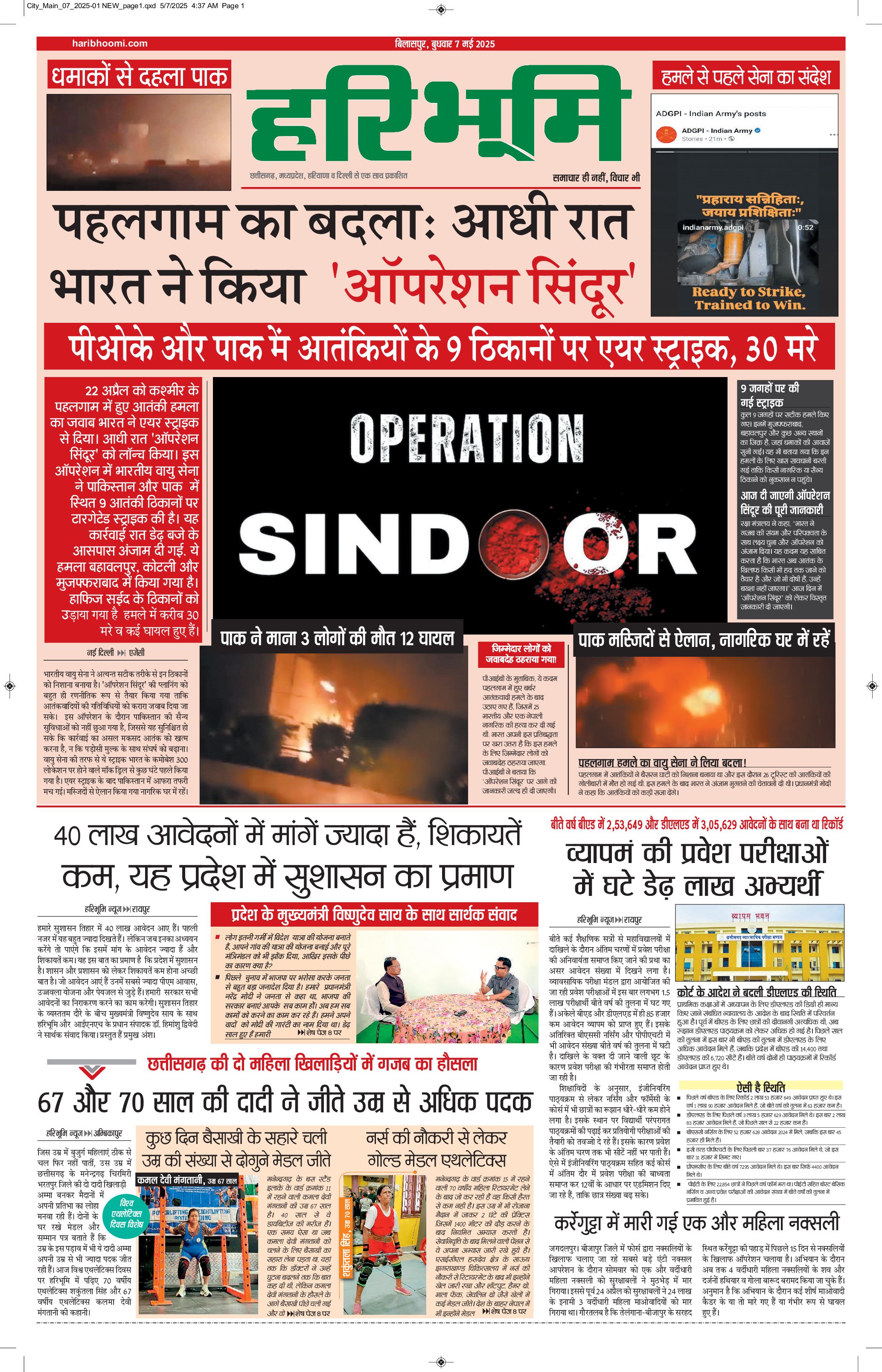 बिलासपुर मुख्य संस्करण - 07 May 2025 - - Page 1