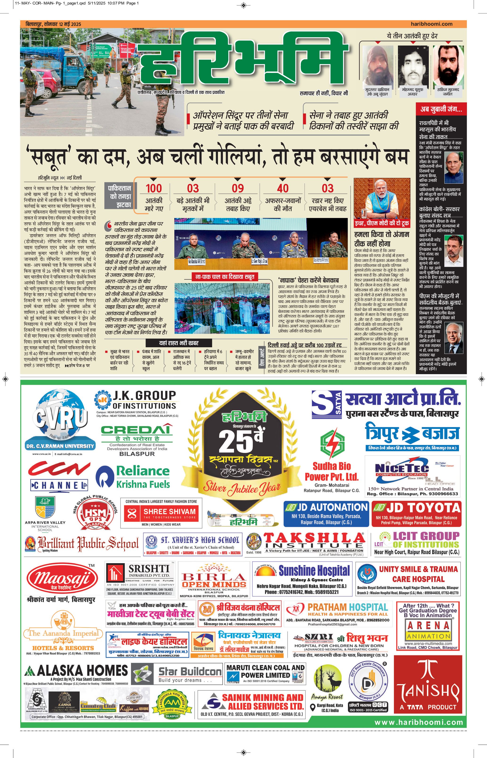 बिलासपुर मुख्य संस्करण - 12 May 2025 - - Page 1