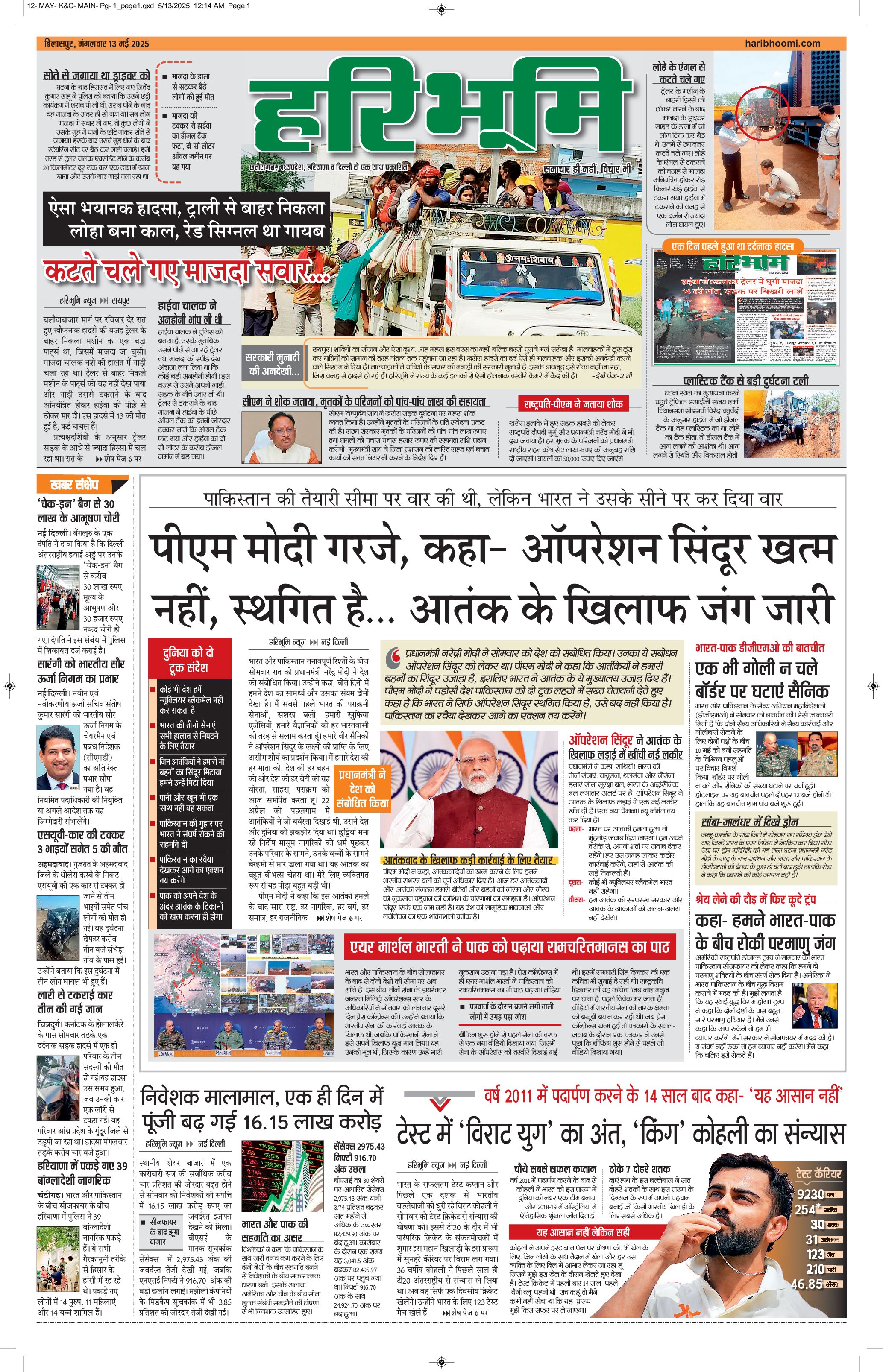 बिलासपुर मुख्य संस्करण - 13 May 2025 - - Page 1