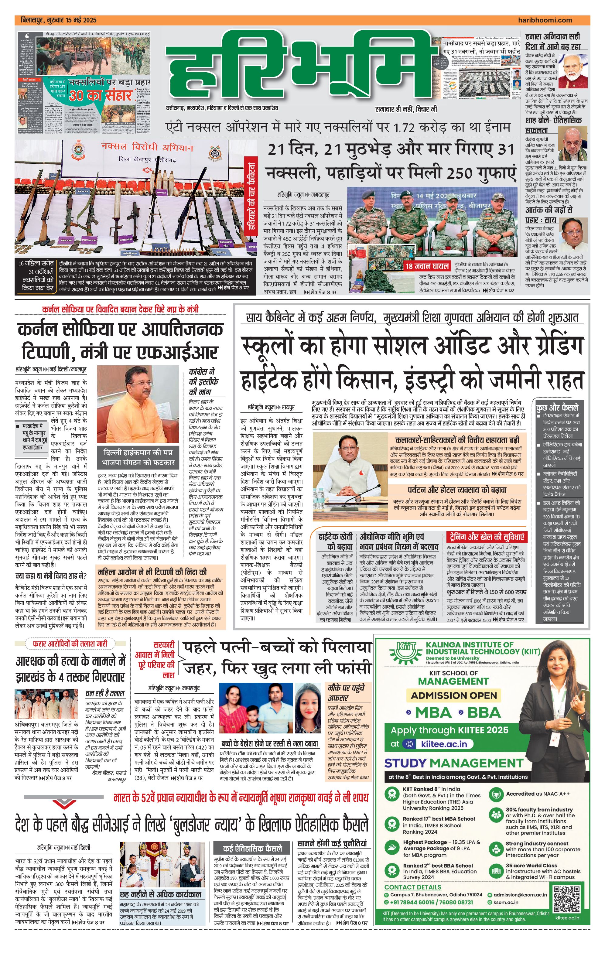 बिलासपुर मुख्य संस्करण - 15 May 2025 - - Page 1