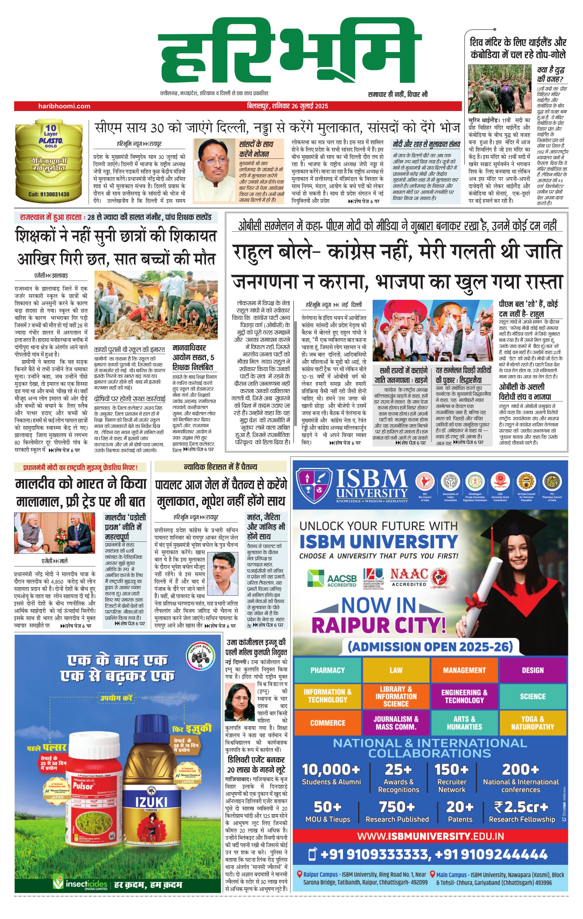 बिलासपुर मुख्य संस्करण - 26 Jul 2025 - - Page 1