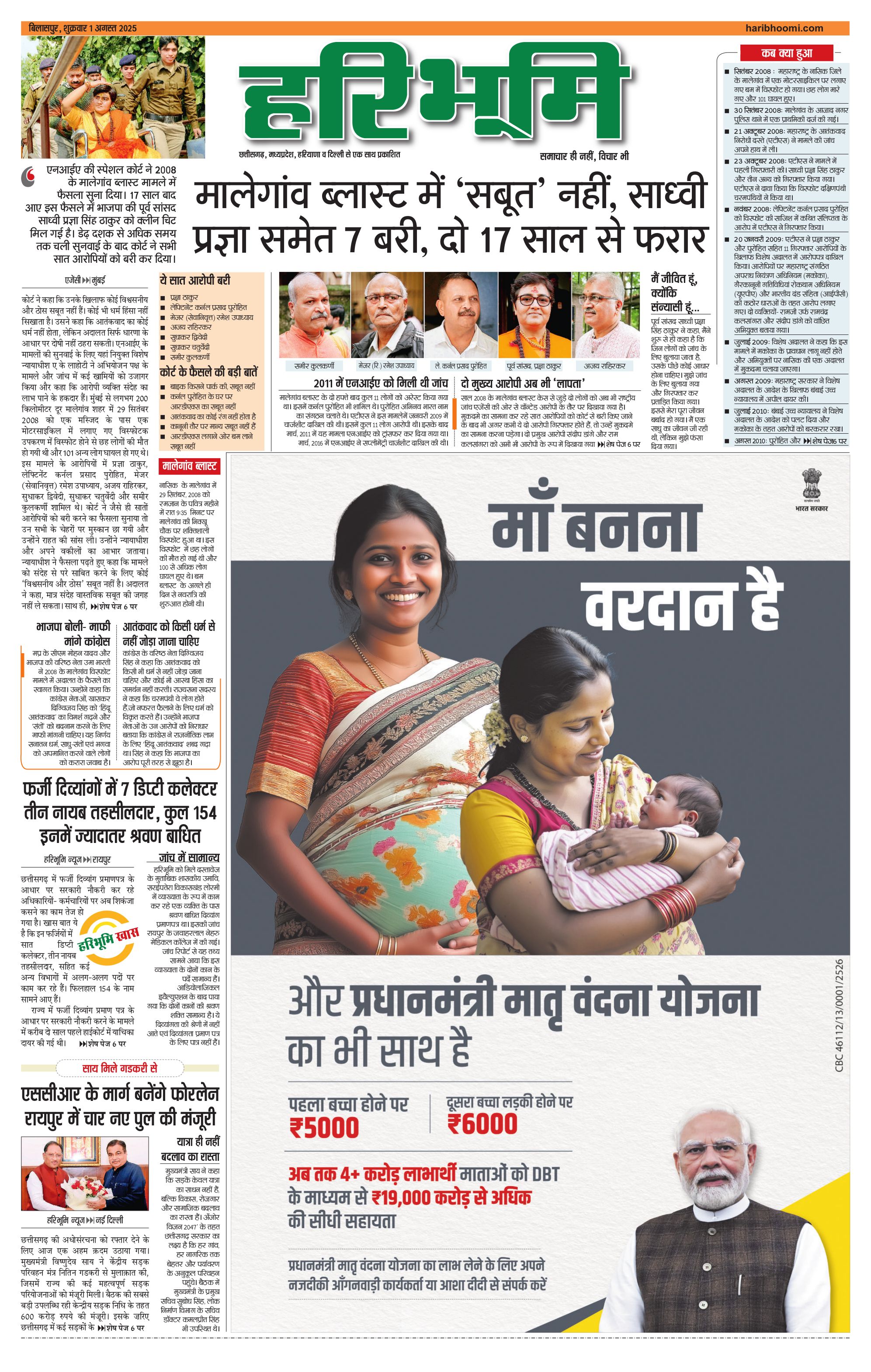 बिलासपुर मुख्य संस्करण - 01 Aug 2025 - - Page 1