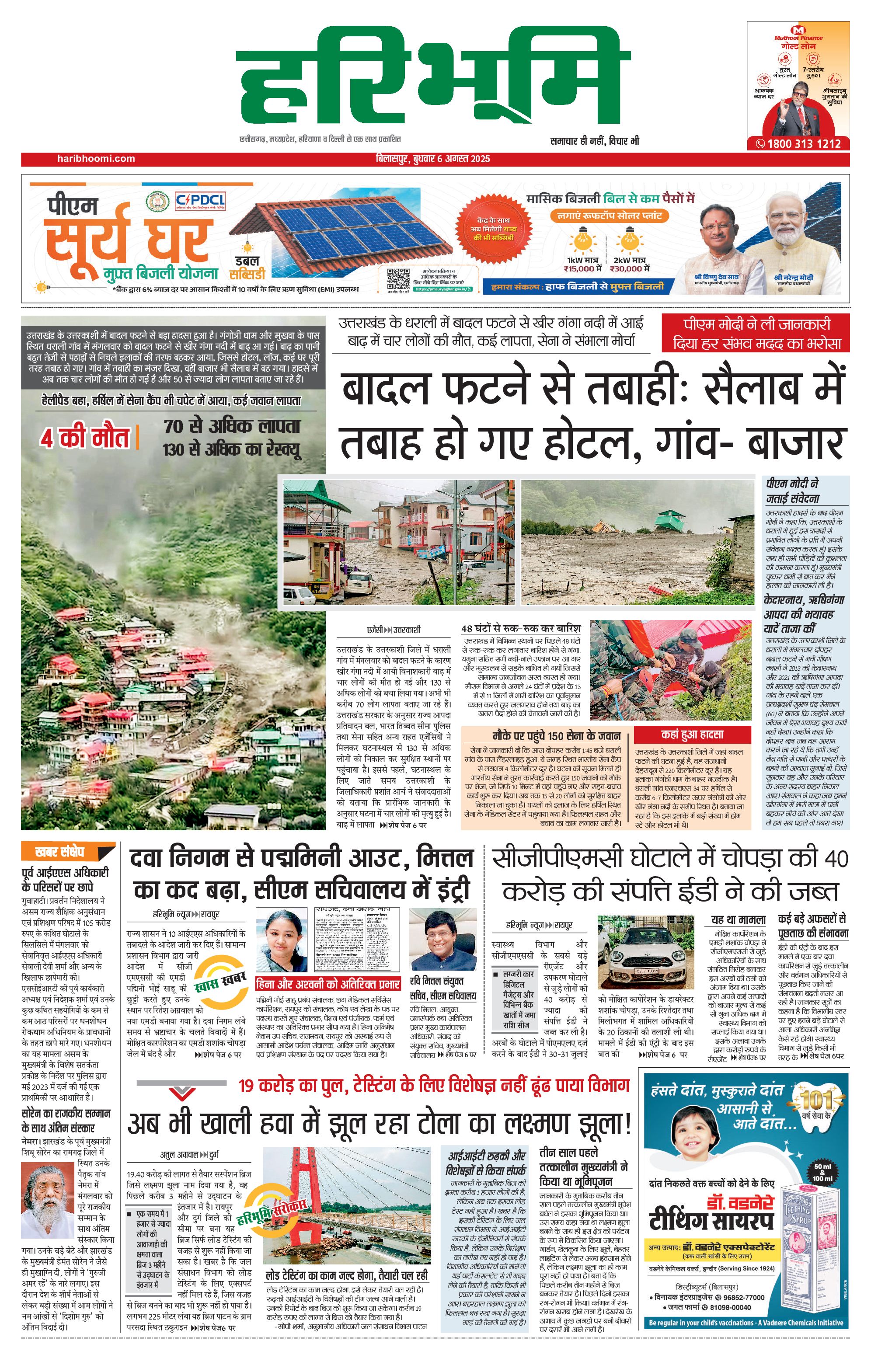 बिलासपुर मुख्य संस्करण - 06 Aug 2025 - - Page 1