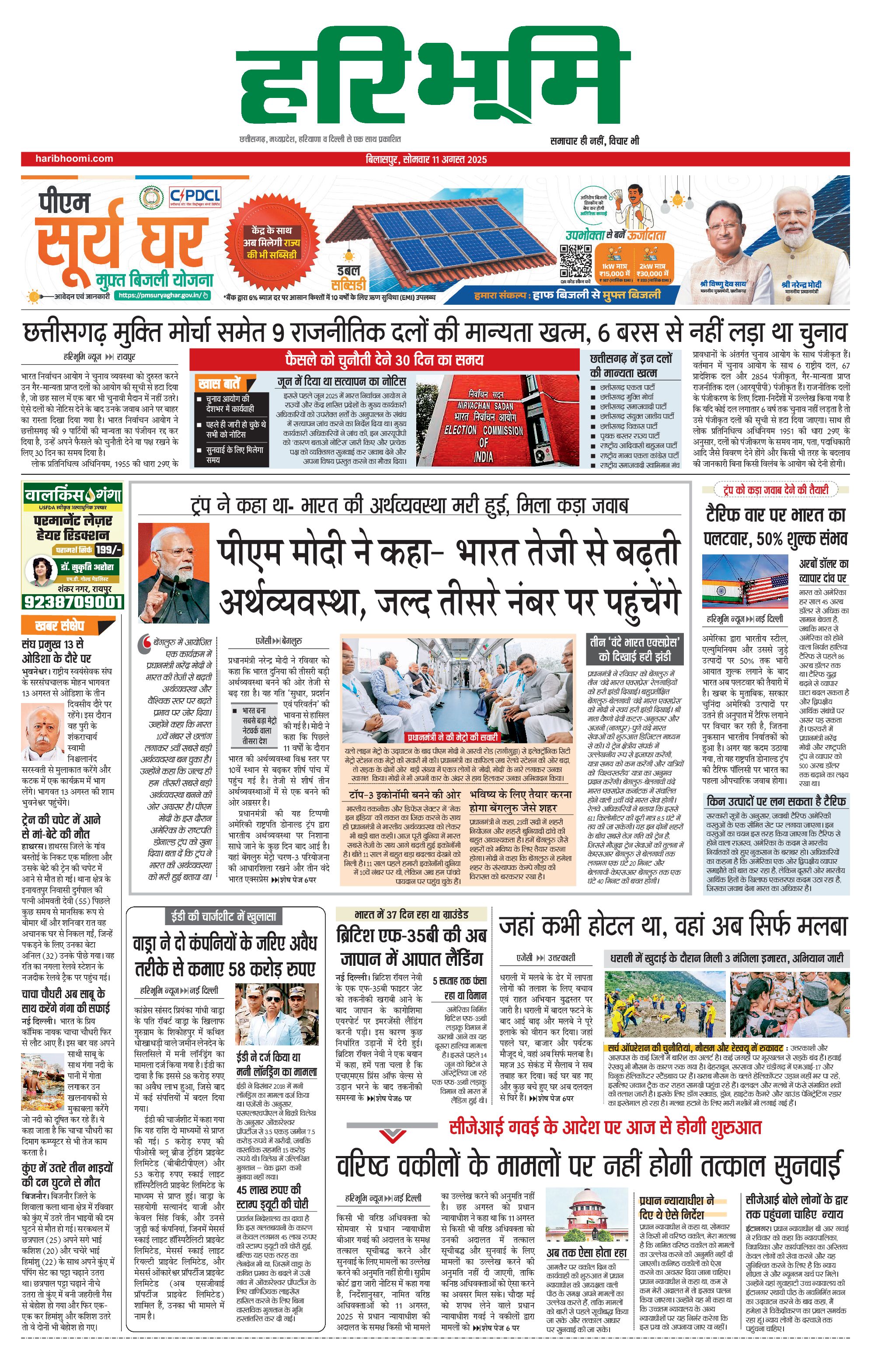 बिलासपुर मुख्य संस्करण - 11 Aug 2025 - - Page 1