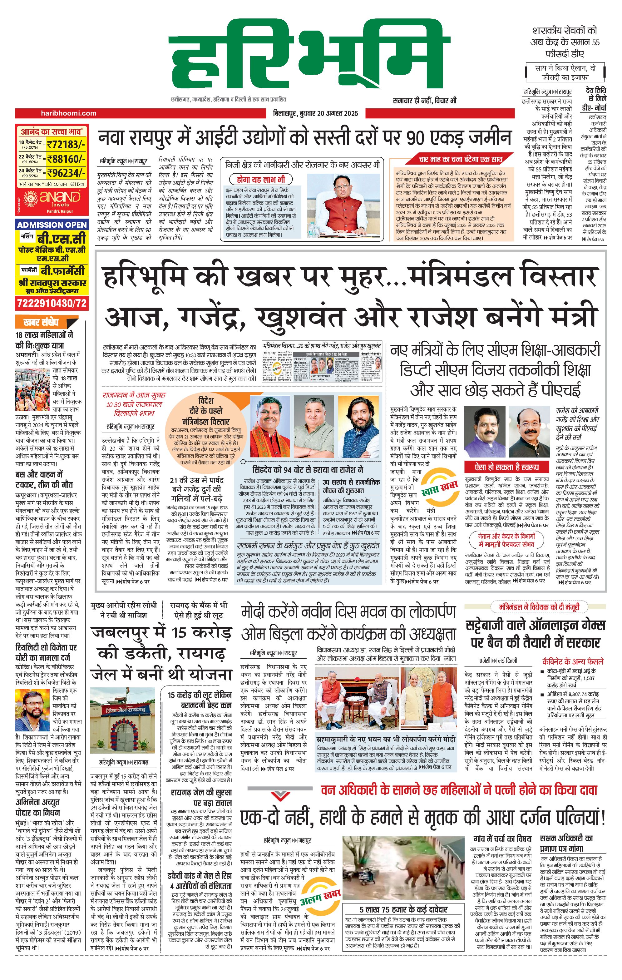 बिलासपुर मुख्य संस्करण - 20 Aug 2025 - - Page 1