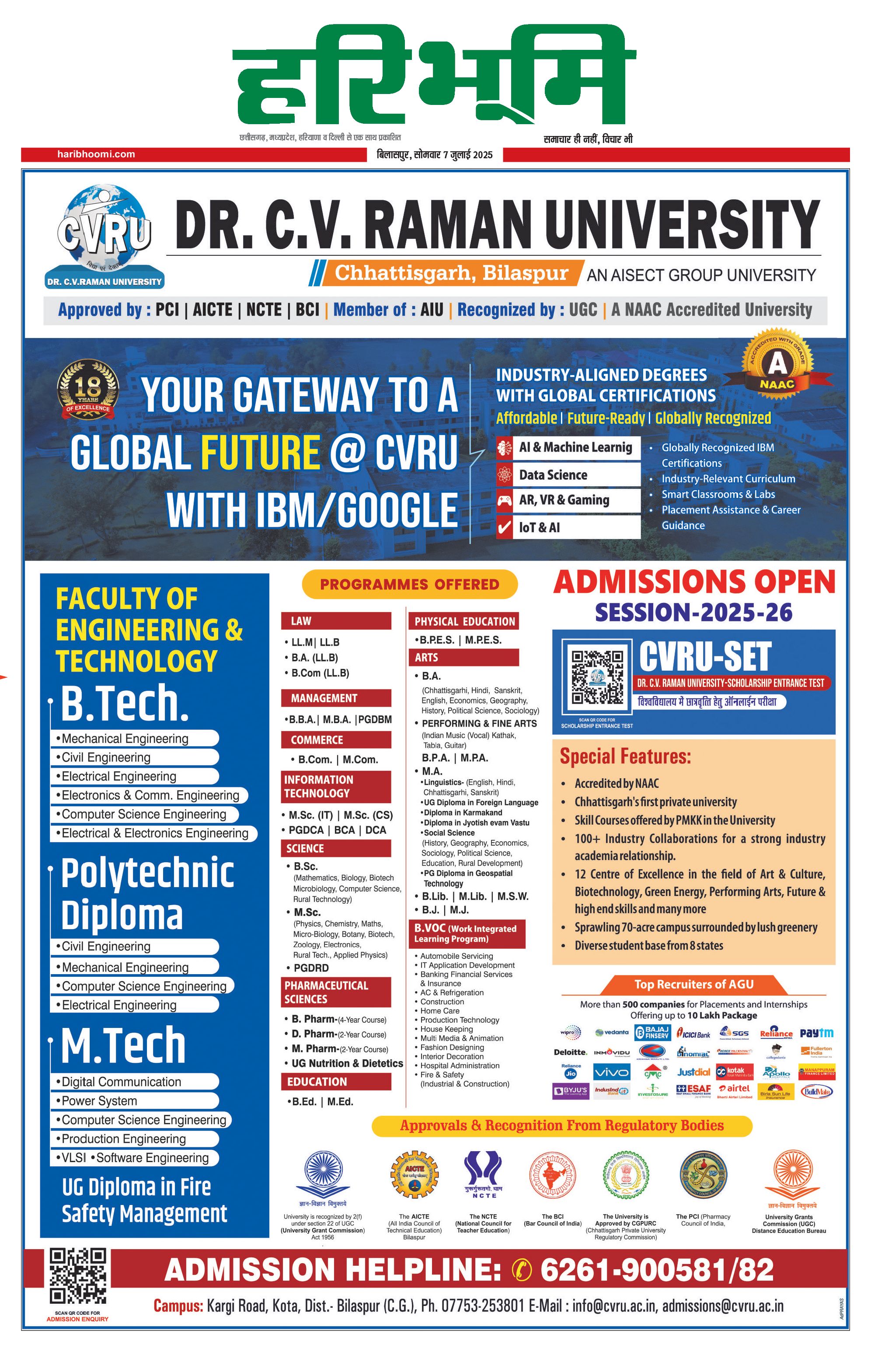 बिलासपुर मुख्य संस्करण - 07 Jul 2025 - - Page 1