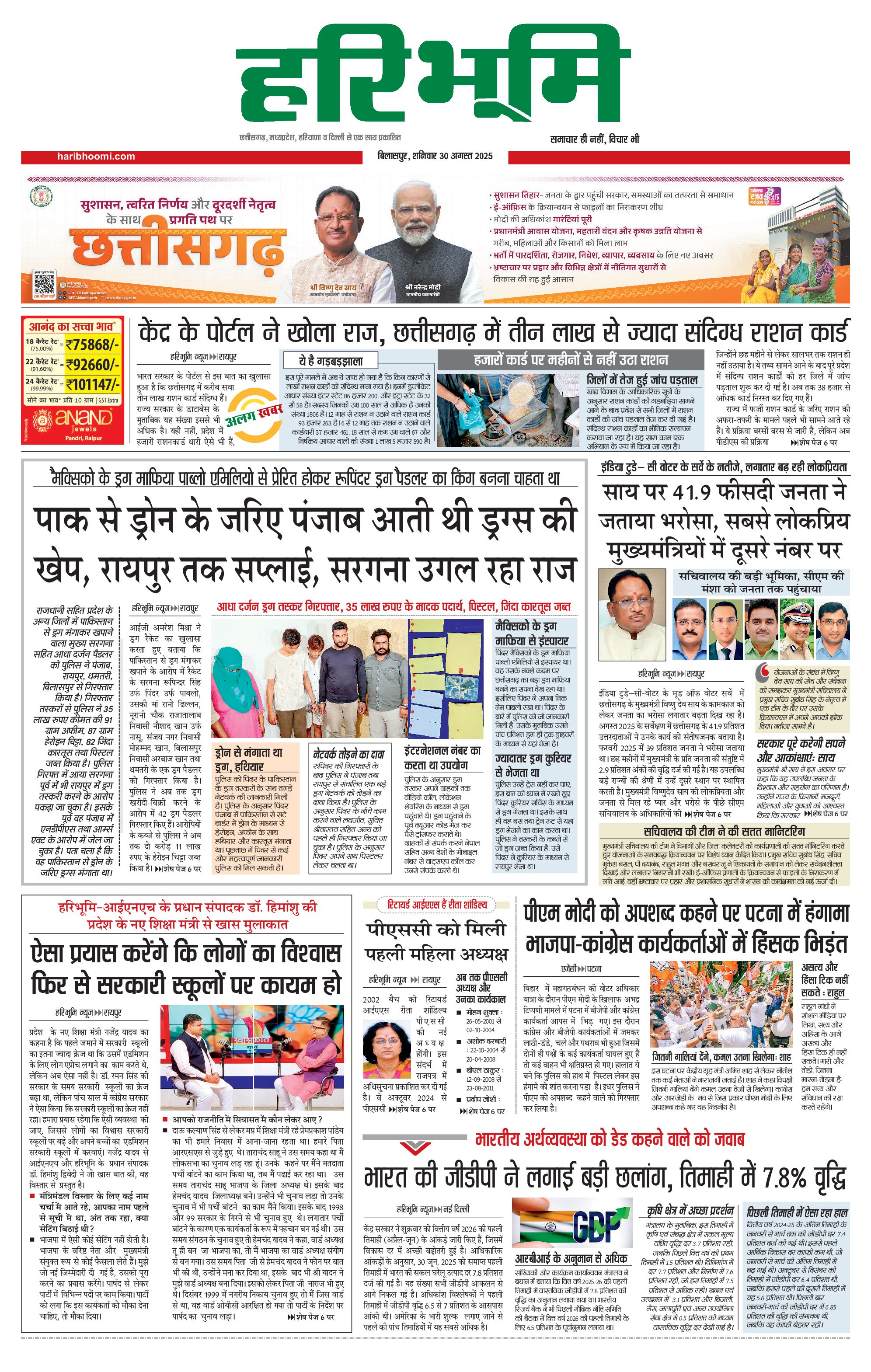 बिलासपुर मुख्य संस्करण - 30 Aug 2025 - - Page 1
