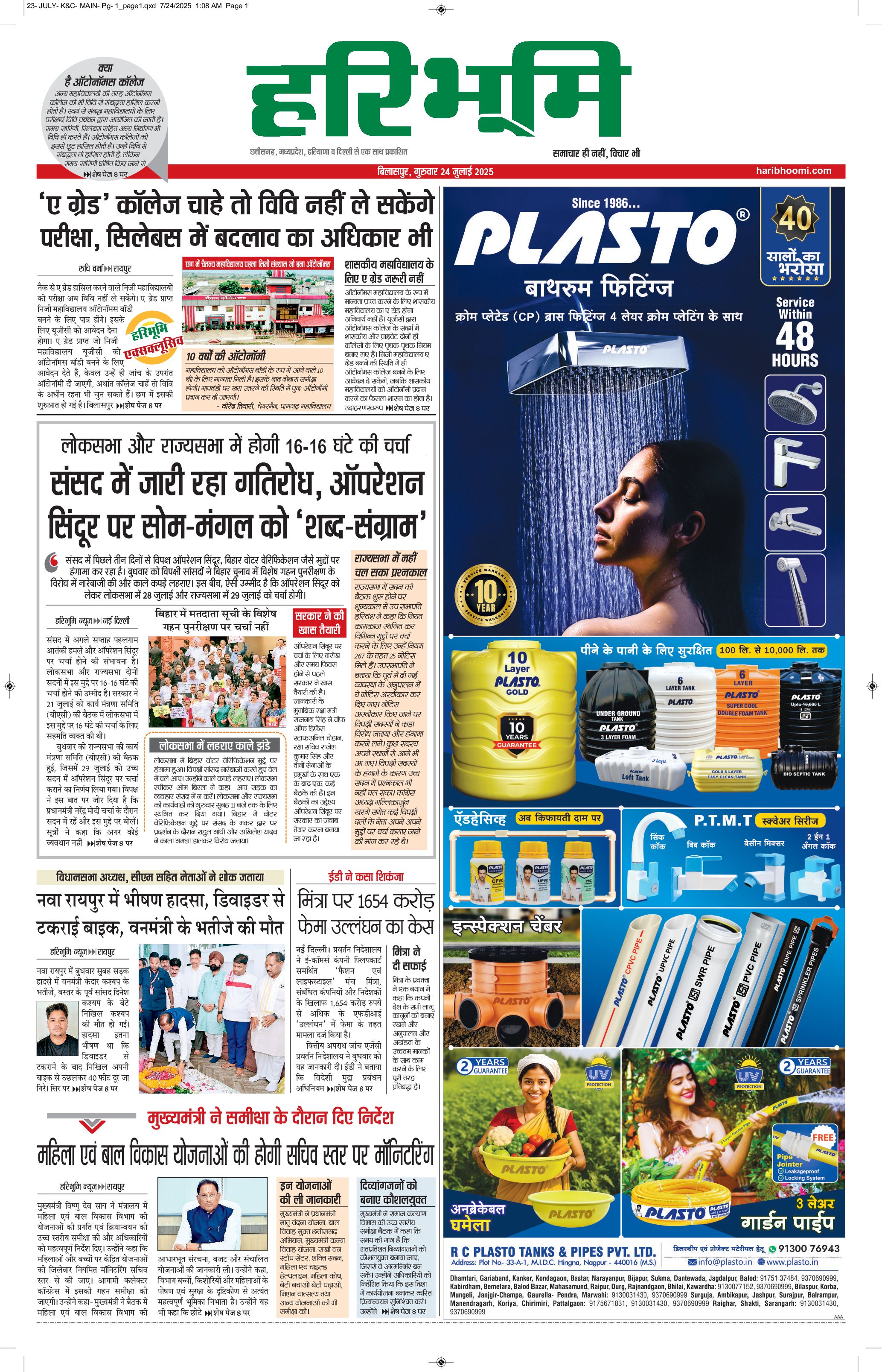 बिलासपुर मुख्य संस्करण - 24 Jul 2025 - - Page 1