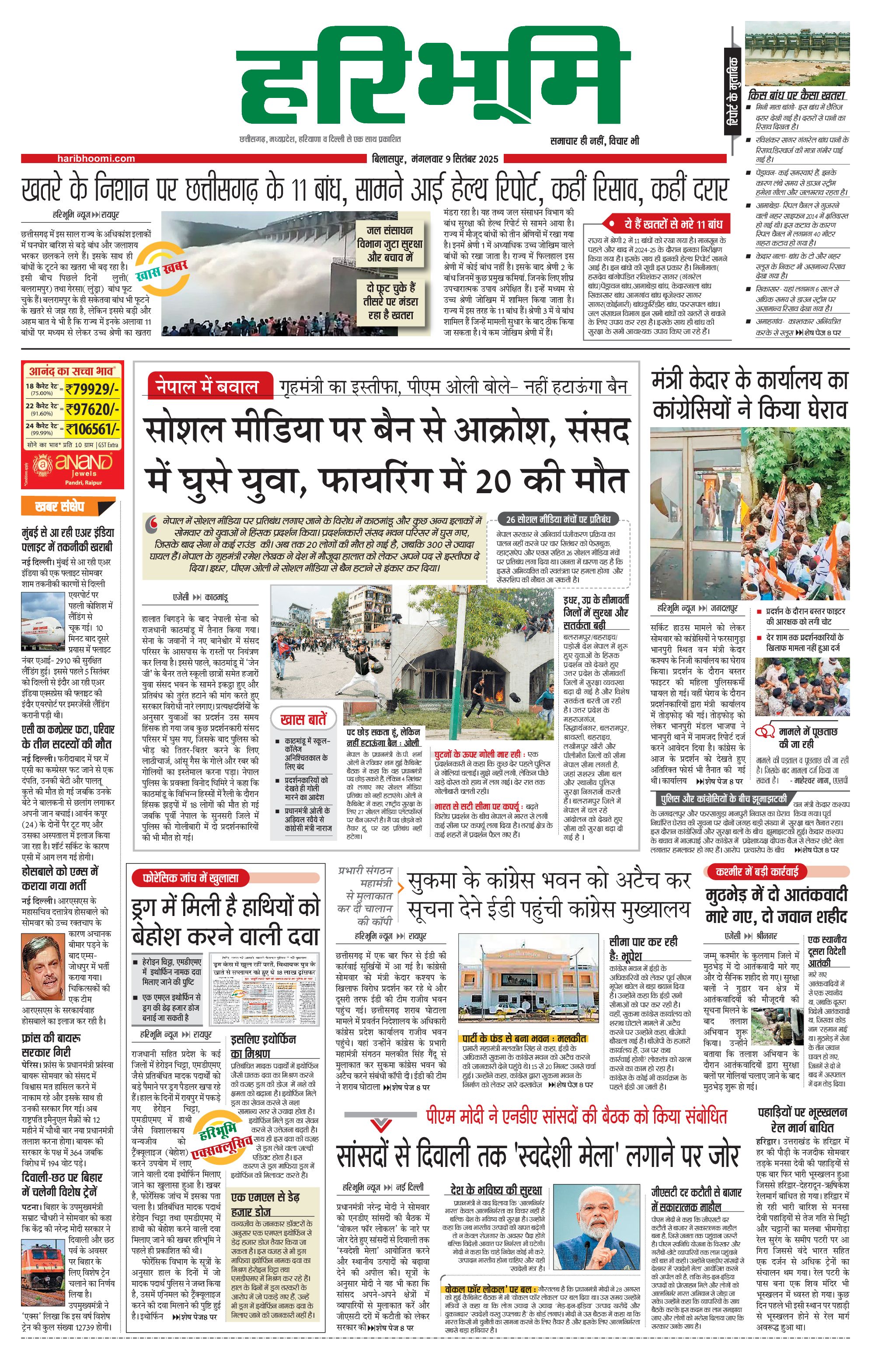 बिलासपुर मुख्य संस्करण - 09 Sep 2025 - - Page 1
