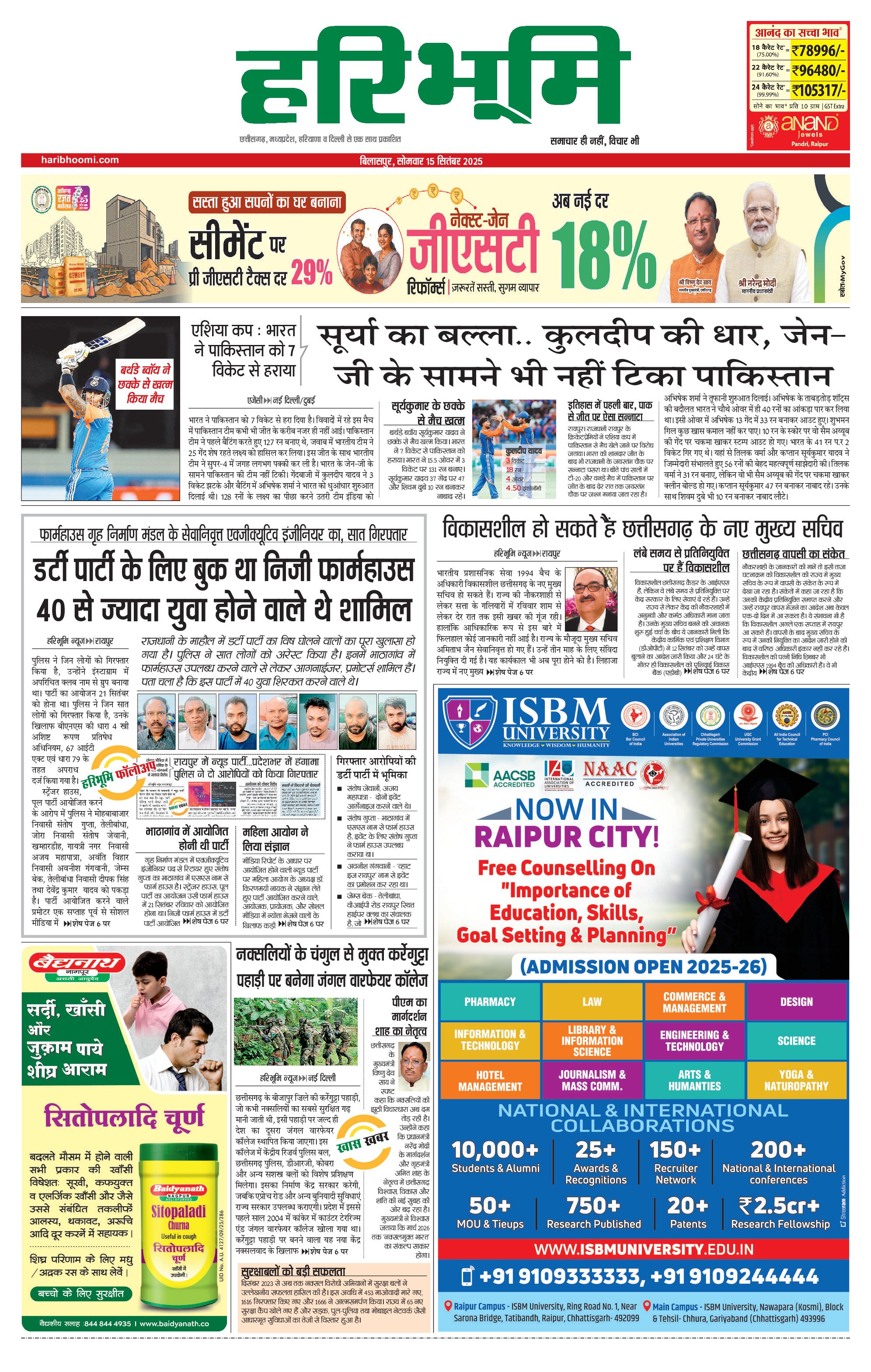 बिलासपुर मुख्य संस्करण - 15 Sep 2025 - - Page 1