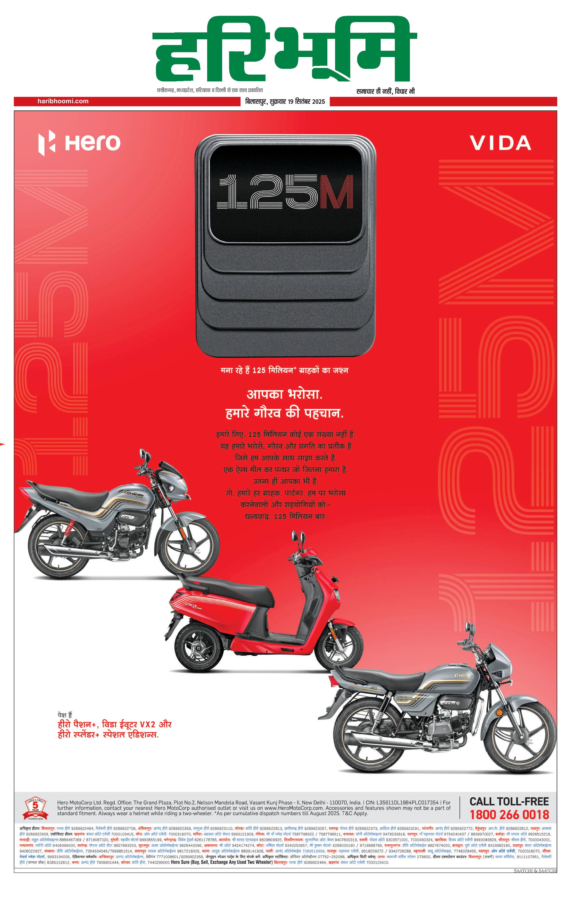 बिलासपुर मुख्य संस्करण - 19 Sep 2025 - - Page 1