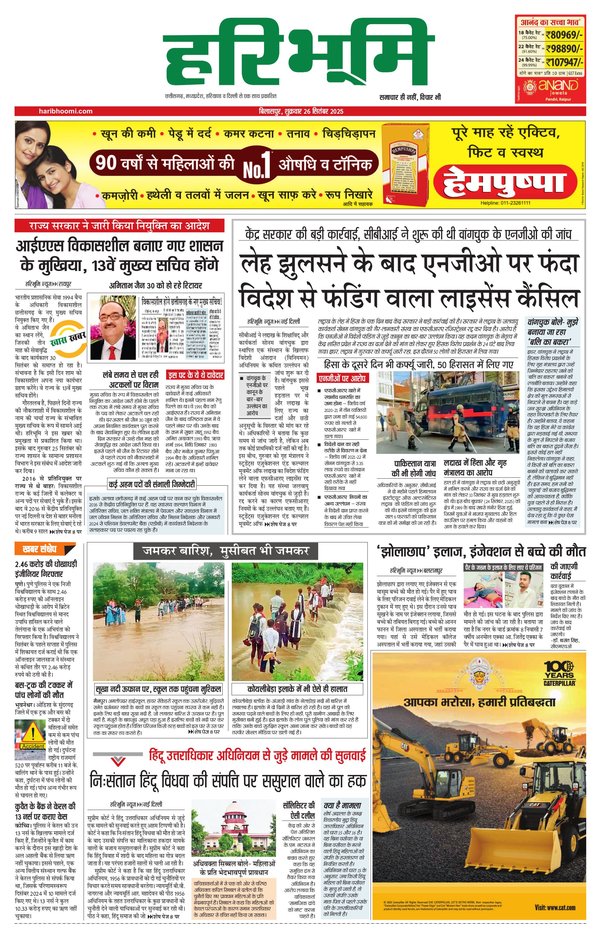 बिलासपुर मुख्य संस्करण - 26 Sep 2025 - - Page 1