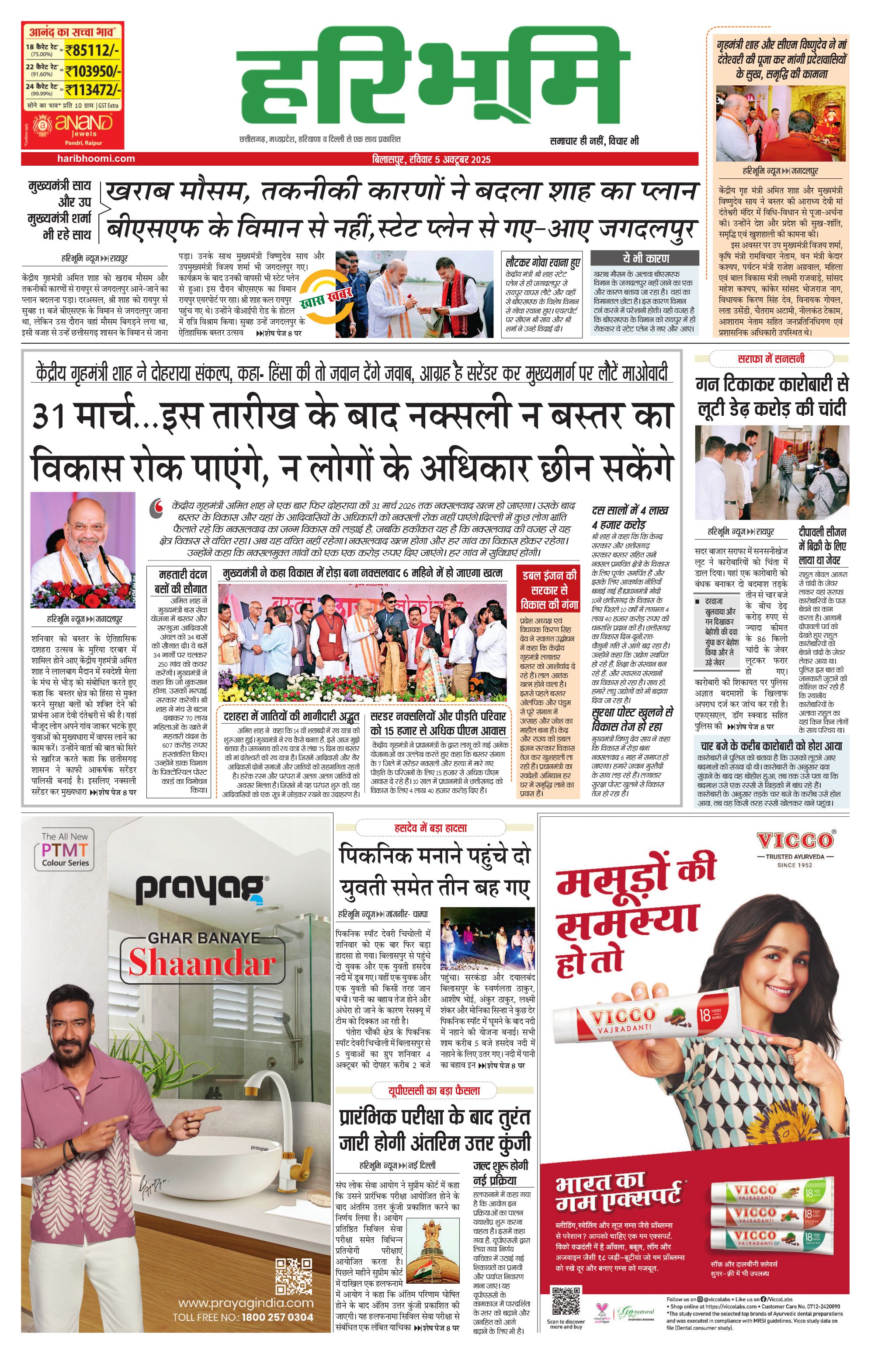 बिलासपुर मुख्य संस्करण - 05 Oct 2025 - - Page 1