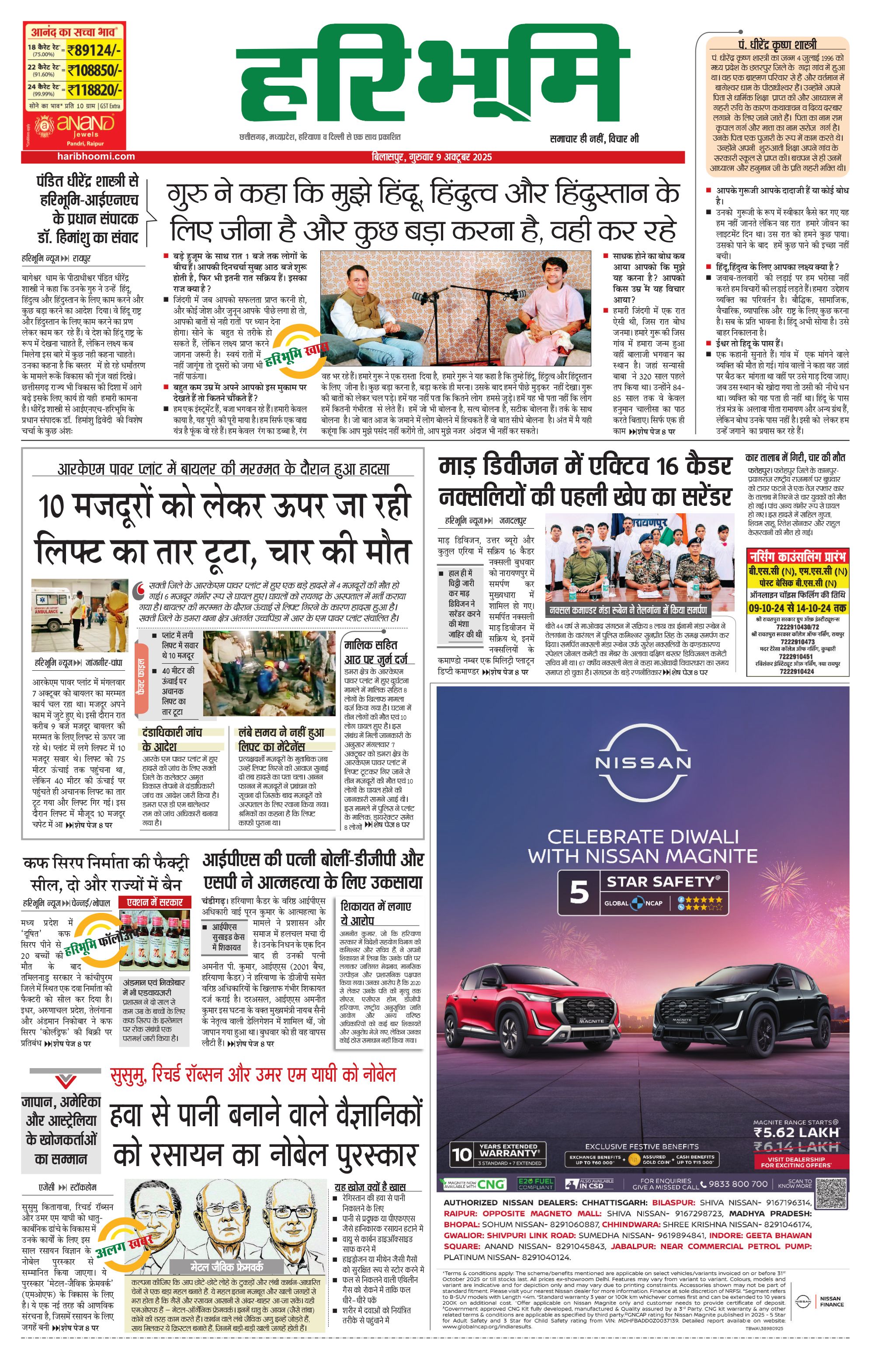 बिलासपुर मुख्य संस्करण - 09 Oct 2025 - - Page 1