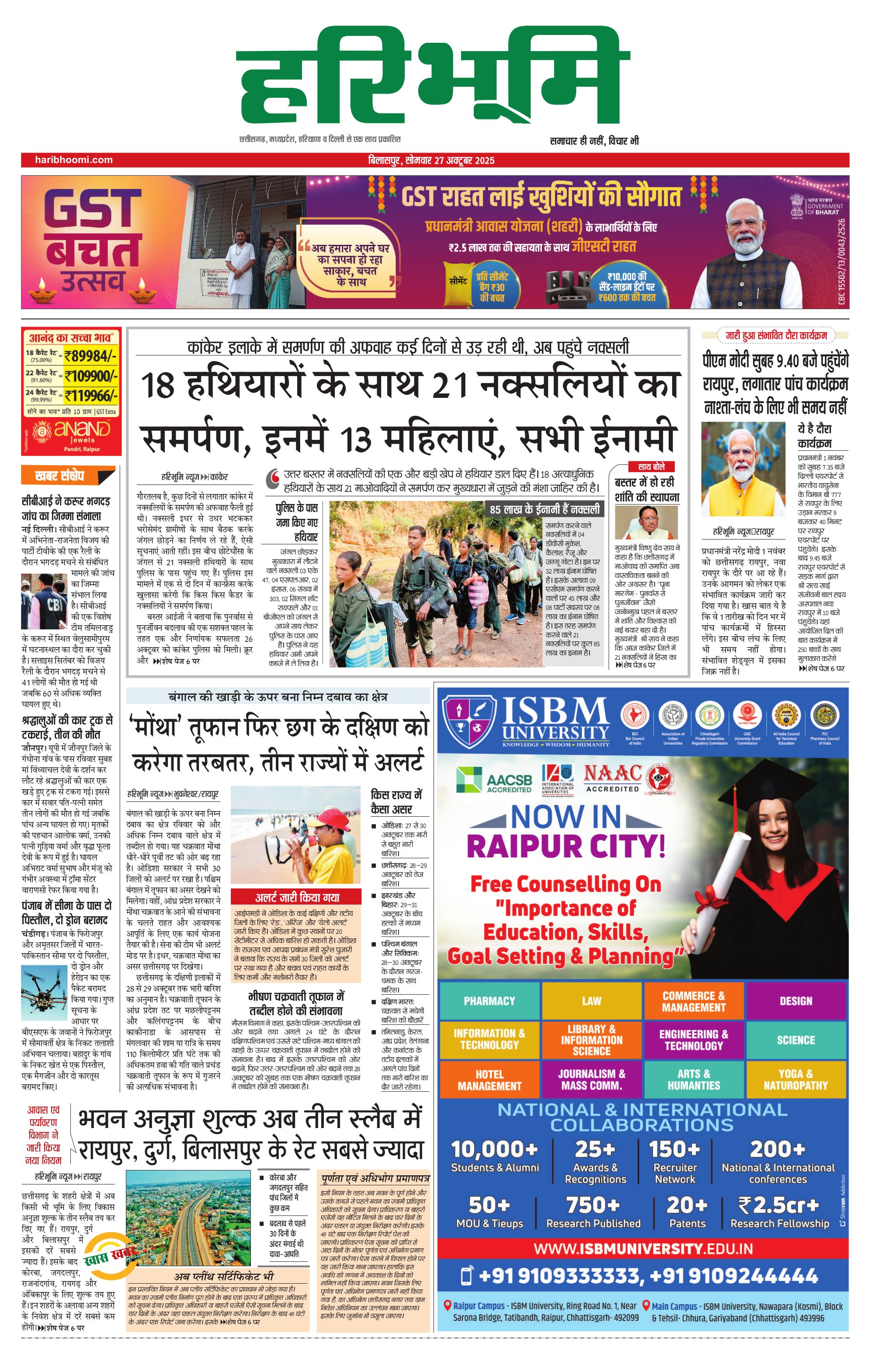 बिलासपुर मुख्य संस्करण - 27 Oct 2025 - - Page 1